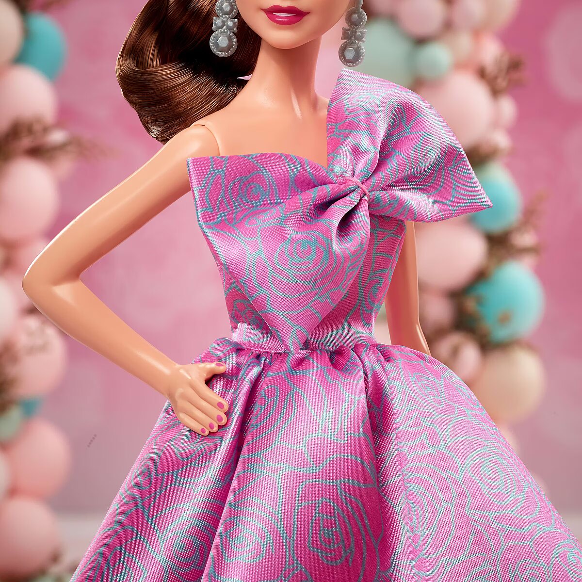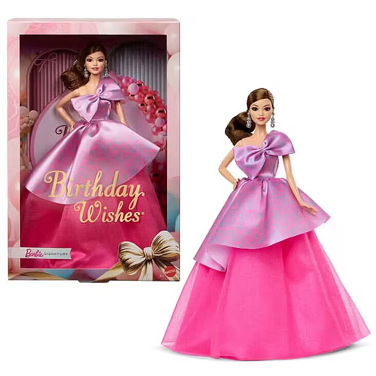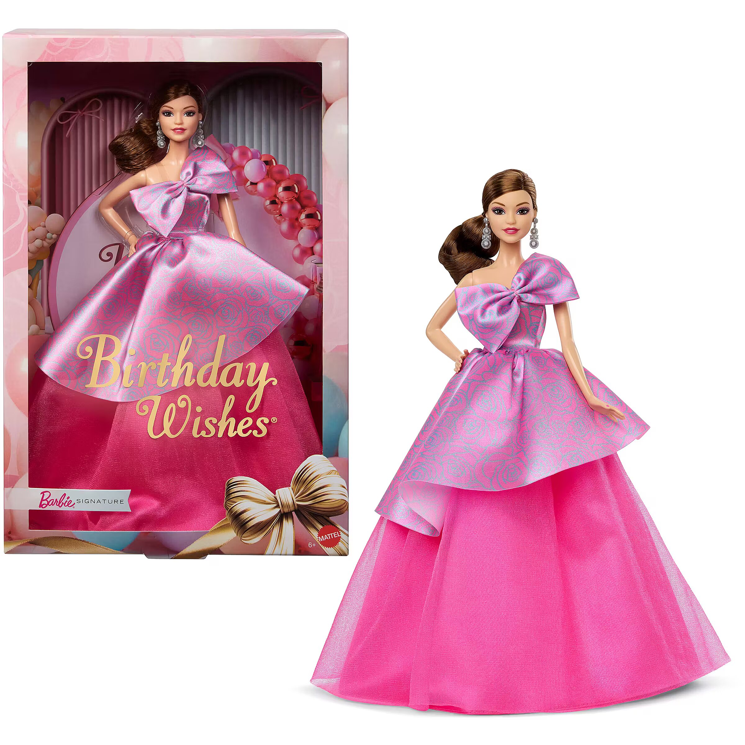 LongSummaryDescription - Barbie Signature Birthday Wishes Doll, Collectible Fashion Doll in Satiny, Pink Dress. Doll type: Fashion doll, Doll's gender: Female, Recommended age (min): 6 yr(s), Suggested gender: Boy/Girl. Height: 330.2 mm, Weight: 198 g. Material: Plastic, Product colour: Multicolour