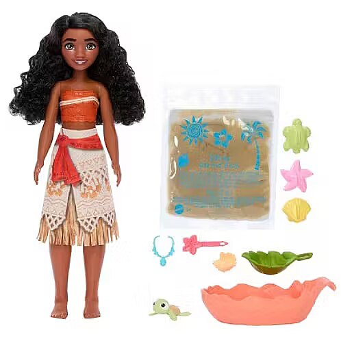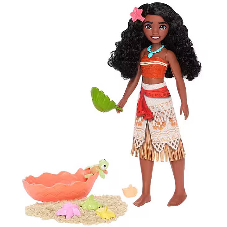 Description - Lalka Vaiana w zestawie Księżniczka Disneya Przyjaciele z oceanu podziwia morskie cuda! Inspirowana bohaterką filmu animowanego Vaiana Disneya lalka zabawka Vaiana ma na sobie filmowy strój ze zdejmowaną spódniczką oraz naszyjnikiem. Dzieci mogą wyobrazić sobie dzień na plaży dzięki piaskowi do formowania, łopatce, koszyczkowi oraz 3 foremkom do piasku! Uroczy żółwik dołącza do zabawy w wodzie lub na lądzie. Lalka nie stoi samodzielnie. Kolory i elementy dekoracyjne mogą się różnić. Lalka Vaiana jest gotowa na plażową przygodę z uroczym żółwiem, piaskiem do formowania oraz wszystkim, czego potrzeba do kreatywnej zabawy! Dzieci mogą wypełnić koszyk miękkim piaskiem do formowania, który zapewnia zabawę sensoryczną do wielokrotnego powtarzania. Zabawa z piaskiem może być bardzo urozmaicona dzięki łopatce i 3 inspirowanym oceanem foremkom, dzięki którym można tworzyć różne kształty i wzory! W zestawie jest też uroczy żółwik - idealny towarzysz morskich przygód Vaiany. Dzieciom spodoba się stylizacja Vaiany ze zdejmowaną spódniczką i naszyjnikiem oraz kwiatową spinką do ozdabiania długich włosów. Świetny prezent dla dzieci, które będą mogły odtwarzać swoje ulubione momenty z filmu lub wymyślać własne opowieści z Vaianą.