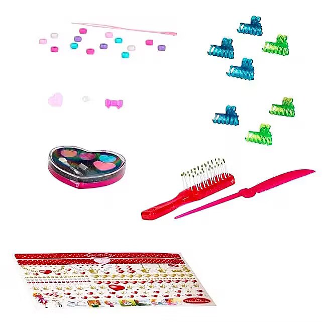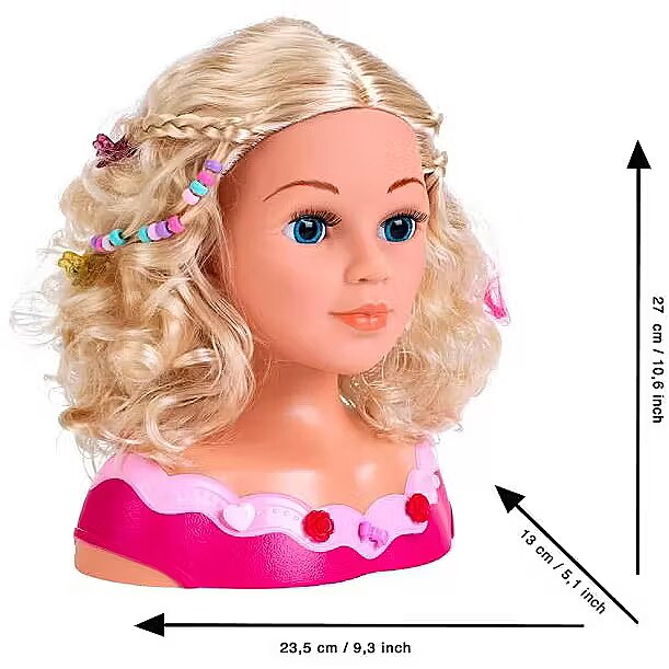 Accessories included - Head for hair styling and make-up (hair can be washed and combed) Brush Hair clips Make-up kit Hair accessories set