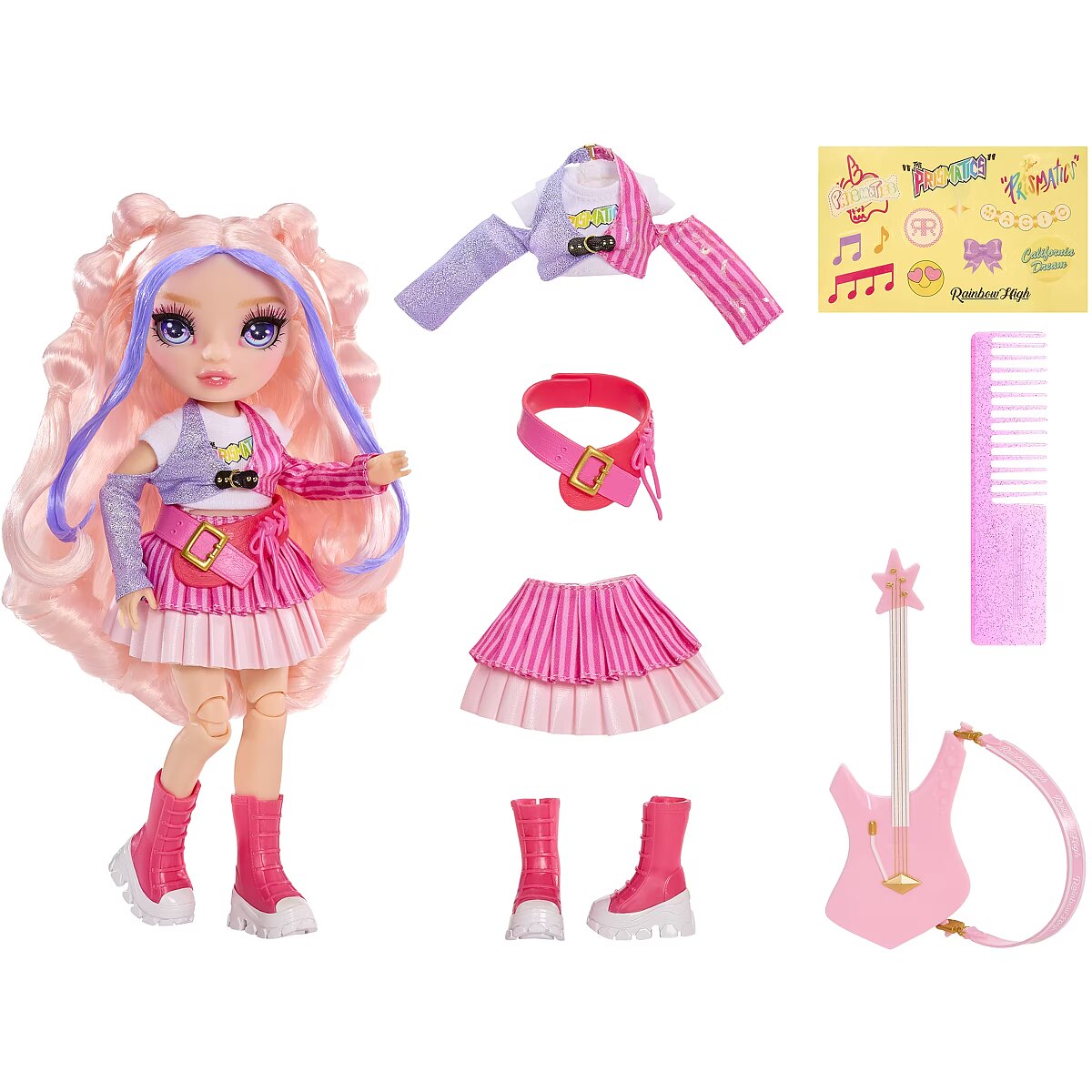 LongProductName - Rainbow High Jr High Rock Band - Bella, Pink 9” Fashion Doll with Guitar, Customize with Stickers, Posable, Great Toy Gift for Kids Ages 4+