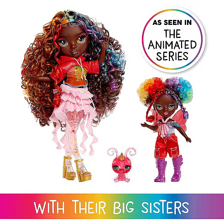 LongDesc - Rainbow High Littles are stepping into a magical world alongside their big sisters—and now, they have wings!These adorable Littles feature interchangeable fantasy fairy wings that can also be swapped with their enchanted pets. Each 5.5” poseable doll comes with a removable outfit, stylish shoes, brushable hair, and mesmerizing clear legs.Collect the rainbow; Astrid dazzles in rainbow with her Butterfly, Apple shines in red with her Deer, Emerald sparkles in green with her Dragon, Sapphire stuns in blue with her Dog, and Opal enchants in rainbow with her Owl.