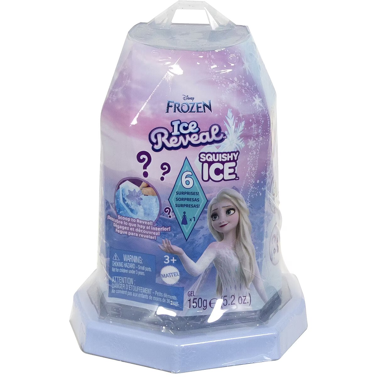 LongDesc - Unboxing gets a sensory spin with Disney Frozen Ice Reveal dolls! To reveal the toys inside, kids use the snowflake scoop to dig through the Squishy Ice gel. The mystery small doll will be an Anna or Elsa doll in a signature look, plus an Olaf or baby Sven character friend. Additional surprises include a cape or hat, themed accessory and double-sided backdrop piece. For more play and display fun, kids can set up or store the doll and pieces in the ice-themed container. Each doll sold separately, subject to availability. Dolls cannot stand alone. Colours and decorations may vary.