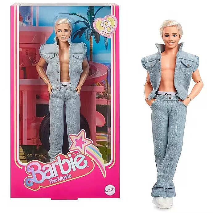 LongDesc - Greetings from Barbie Land! Inspired by Ken's character in Barbie The Movie, this collectible Ken doll wears a head-turning denim look. With his unbuttoned vest and iconic Ken boxers peeking out from his jeans, he captures all of film Ken's signature style! Celebrating Barbie The Movie, this Ken doll makes a great gift for fans and collectors alike. Doll stand included. Doll cannot stand alone. Colours and decorations may vary.