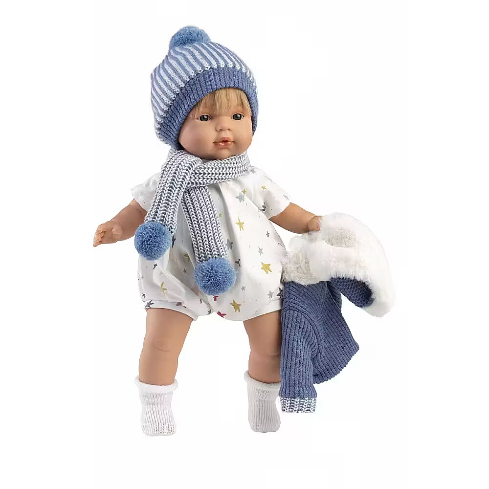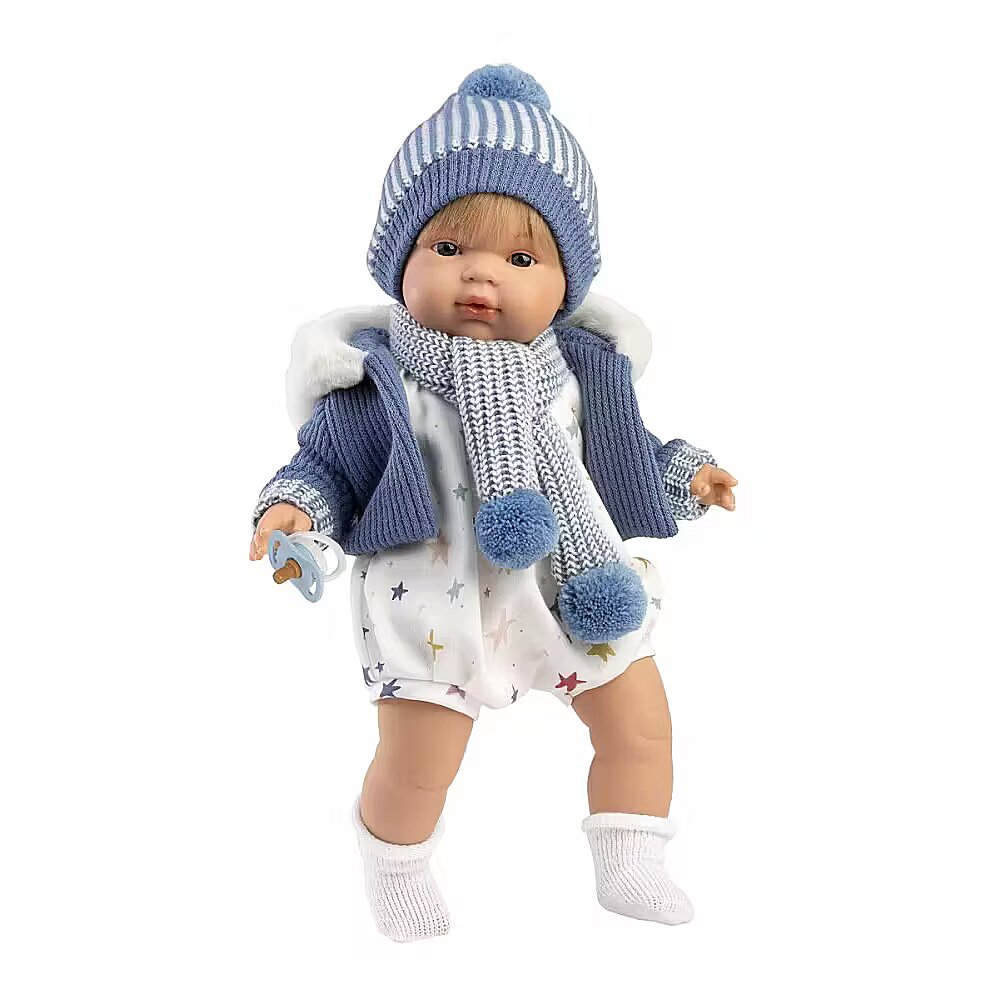Description - Llorens 38573 Crying Doll 38 cm - Sasha Handmade Llorens dolls are crafted with meticulous attention to detail. Delicately highlighted features, shading, beautiful eyelashes, and expressive eyes. Made from the highest quality materials, each doll comes to life and gains character in the hands of its creator. Their outfits are made from organic cotton, wool, and recycled materials. This makes it the perfect gift for your child, combining both educational and playful value. Handmade in Spain with love. Name: Sasha Height: 38 cm Materials: Cotton body, vinyl arms, legs, and head Includes: Five-piece outfit and pacifier Features: Cries when pacifier is removed Batteries included: LR-44