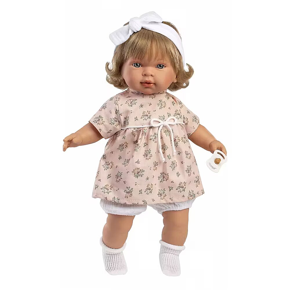 Description - Llorens 42164 Crying Doll 42 cm - Carla Handmade Llorens dolls are crafted with meticulous attention to detail. Delicately highlighted features, shading, beautiful eyelashes, and expressive eyes. Made from the highest quality materials, each doll comes to life and gains character in the hands of its creator. Their outfits are made from organic cotton, wool, and recycled materials. This makes it the perfect gift for your child, combining both educational and playful value. Handmade in Spain with love. Name: Carla Height: 42 cm Materials: Cotton body, vinyl arms, legs, and head Includes: Four-piece outfit and pacifier Features: Cries when pacifier is removed Batteries included: LR-44