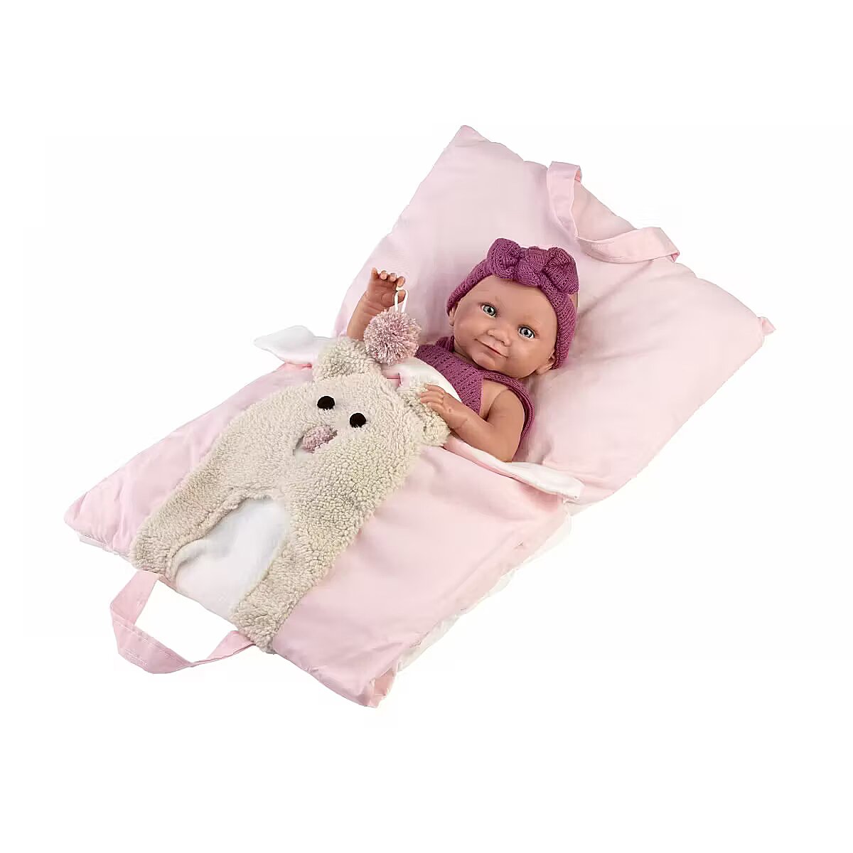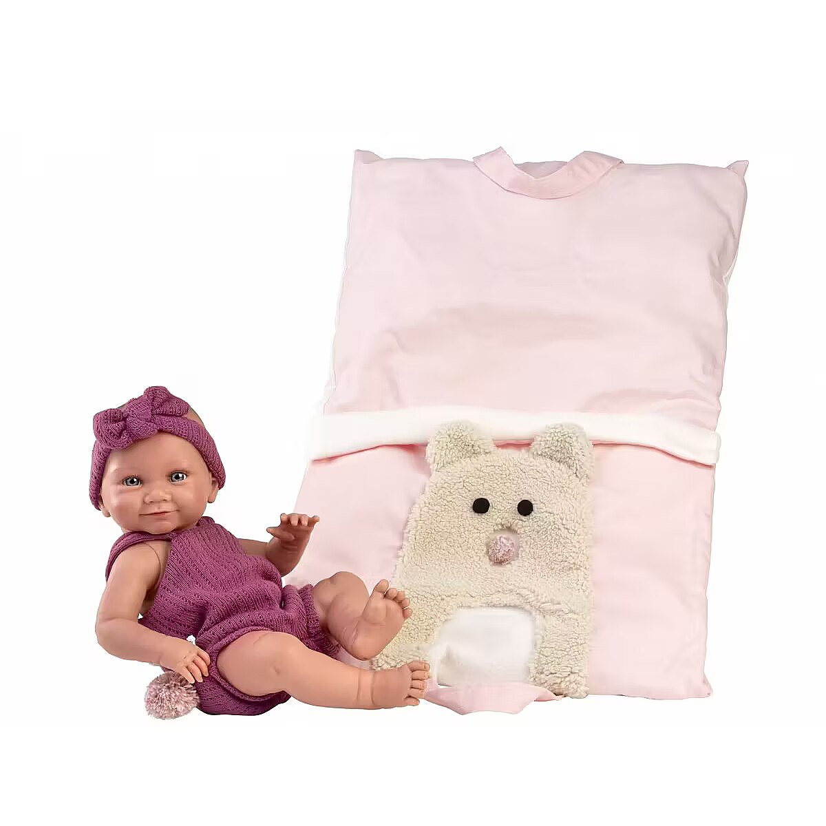 Description - Llorens 73812 Vinyl Baby Doll 40 cm - Nica in Pink Sleeping Bag/Baby Carrier The handmade production of Llorens dolls ensures they are crafted with meticulous attention to detail. Delicately highlighted features, shading, beautiful eyelashes, and eyes. Made from the highest quality materials. Each doll gains color and life in the hands of the maker. Their outfits are made from organic cotton, wool, and recycled materials. This makes it the perfect gift for your child, serving both educational and playful purposes. Hand made in Spain with love. Name: Nica Height: 40 cm Material: Vinyl Includes: Three-piece outfit, baby carrier Features: Can move arms, legs, and head