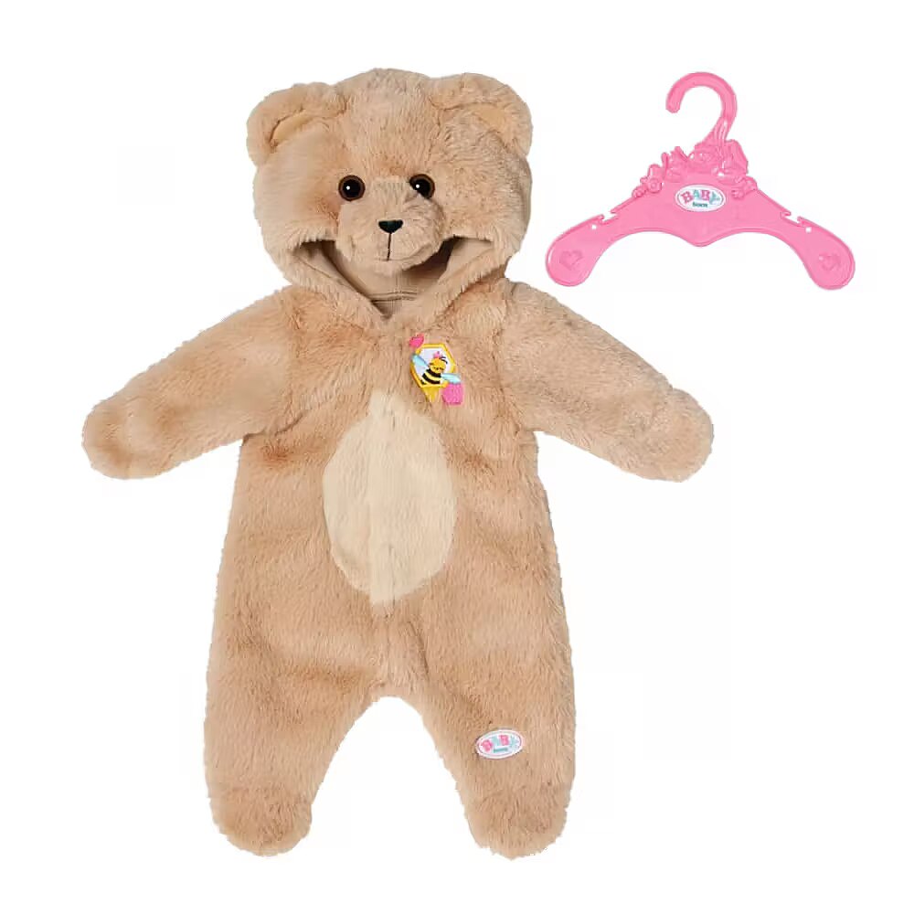 Description - Oops, is that the BABY born bear? No, it's BABY born. But with her bear onesie, she looks just like her best friend. In the suit made of cosy material with a bear hood, she can romp through the forest with Teddy and explore his bear world together with him. Cosy bear onesie for BABY Born The material is as cuddly as the BABY born bear itself. High-quality accessories for the BABY born branded play doll. For extended, varied and long-lasting playtime fun.