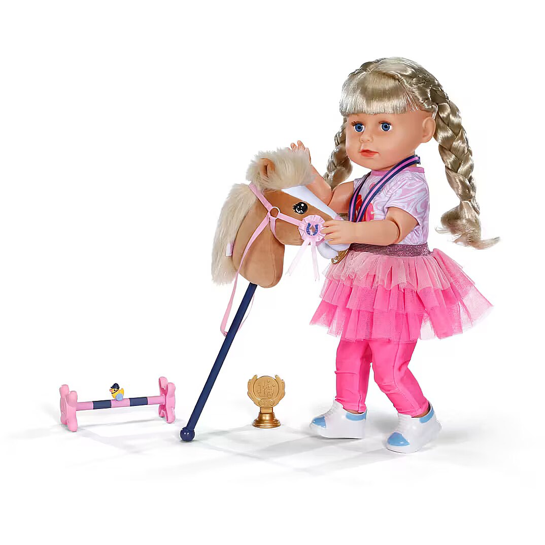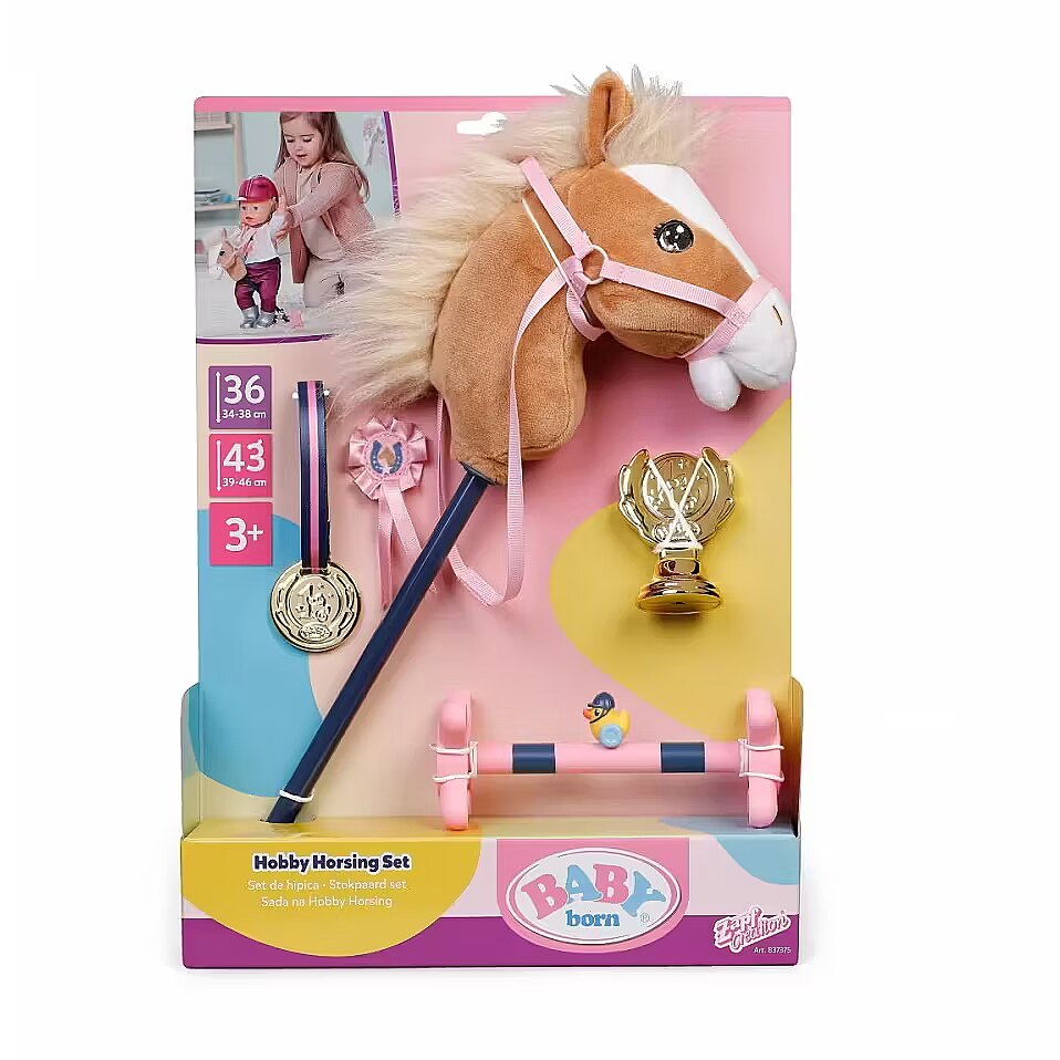 LongDesc - With this set, BABY born Emma can also take part in the trendy hobby of horsing. The hobby horse is ideal for little riding fans who want to take their doll with them on a ride. A small obstacle with Berta the duck, a medal to hang around for dolls, as well as a horse medal to pin on the horse harness and a winner's trophy complete the hobby horsing game perfectly.