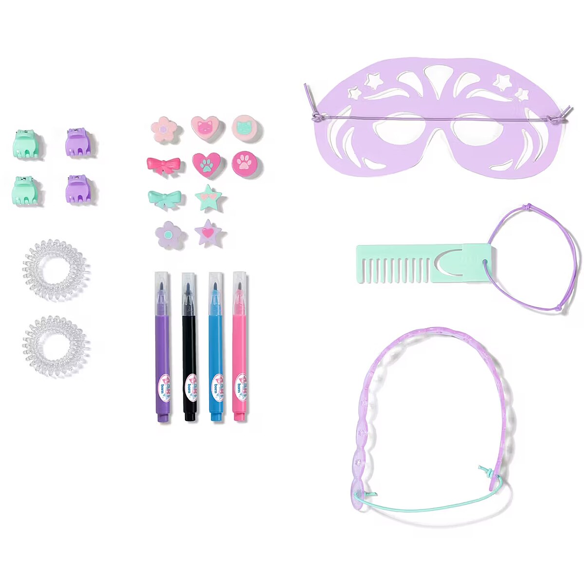 LongDesc - With the BABY born Creative Styling Head, there are no limits to imagination and creativity. The 22cm tall styling head can be made up and painted using the markers and stencil provided. But that's not all: the bust can also be painted with the colourful markers andpersonalised with 10 pastel-coloured The highlight is of course the long pink hair made of high-quality nylon. The coolest hairstyles can be conjured up with the matching accessories. The pins can also be used on the hair band.