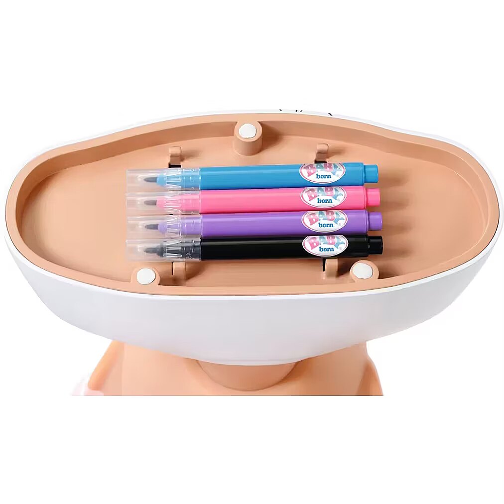 Description - BABY born Siostrzyczka - Głowa do stylizacji Nowy pomysł na zabawę w stylizację - makijaż i dekorowanie twarzy. Zawiera specjalne kredki do makijażu, szablony, grzebień, opaskę i spinki do włosów.