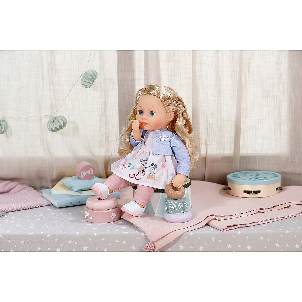 LongDesc - Sophia also has beautiful, long hair, made of high-quality nylon, which is perfect for creative and stylish hairstyles. Whether it's a playful braid, a cute curl or an elegant ponytail - with her hair, there are no limits to your imagination. She is the perfect friend for little stylists who want to restyle their dolls again and again. When she is laid down after playing, she closes her sleeping eyes and can also be cuddled thanks to her soft body. Everything from BABY born in size 36cm fits her.