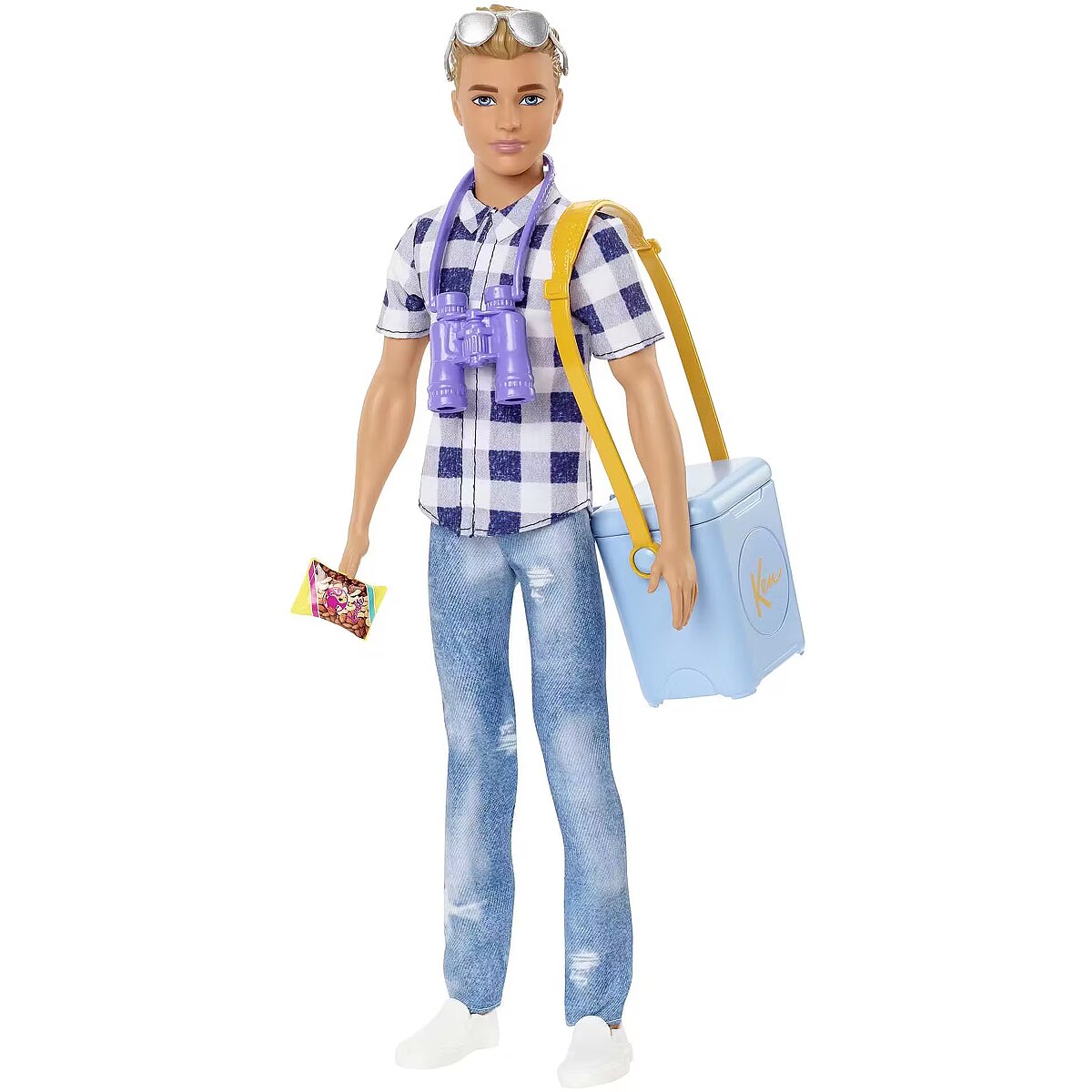 LongDesc - Play out camping fun with Ken doll inspired by the hit series, Barbie It Takes Two! In a blue and white plaid 'button-up' shirt, distressed jeans and white sneakers, Ken doll is ready for fun in the great outdoors. Set the scene for camping stories with accessories including a cooler, map, binoculars and more! Kids ages 3 to 7 years old will love exploring favourite stories and dreaming up new adventures with dolls inspired by Barbie It Takes Two. They can collect other Barbie dolls and toys to expand storytelling even more! Each sold separately, subject to availability. Doll cannot stand alone. Colours and decorations may vary.