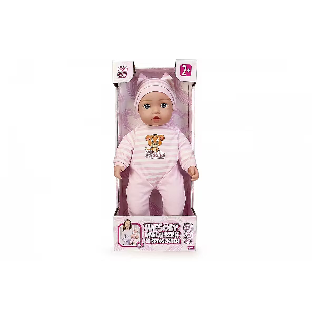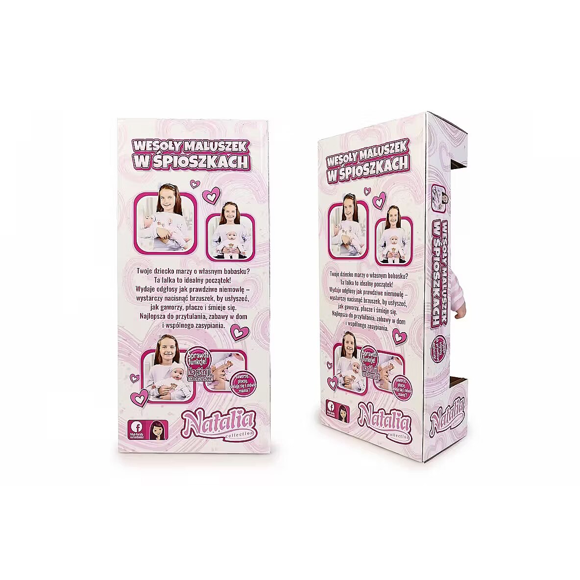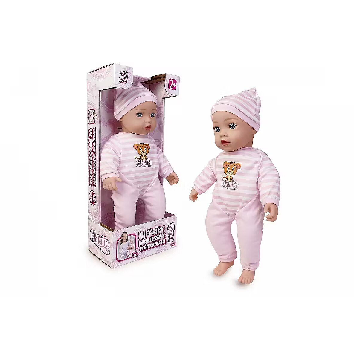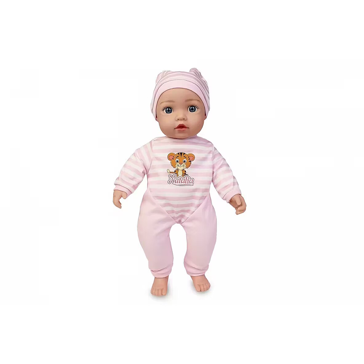 Description - Natalia Baby Doll 45 cm Pressing the tummy activates sounds of baby laughter, crying, and cooing. The baby says "mama" and "daddy."