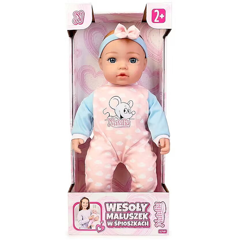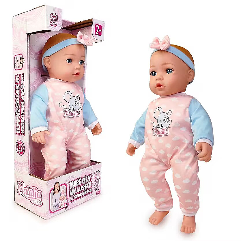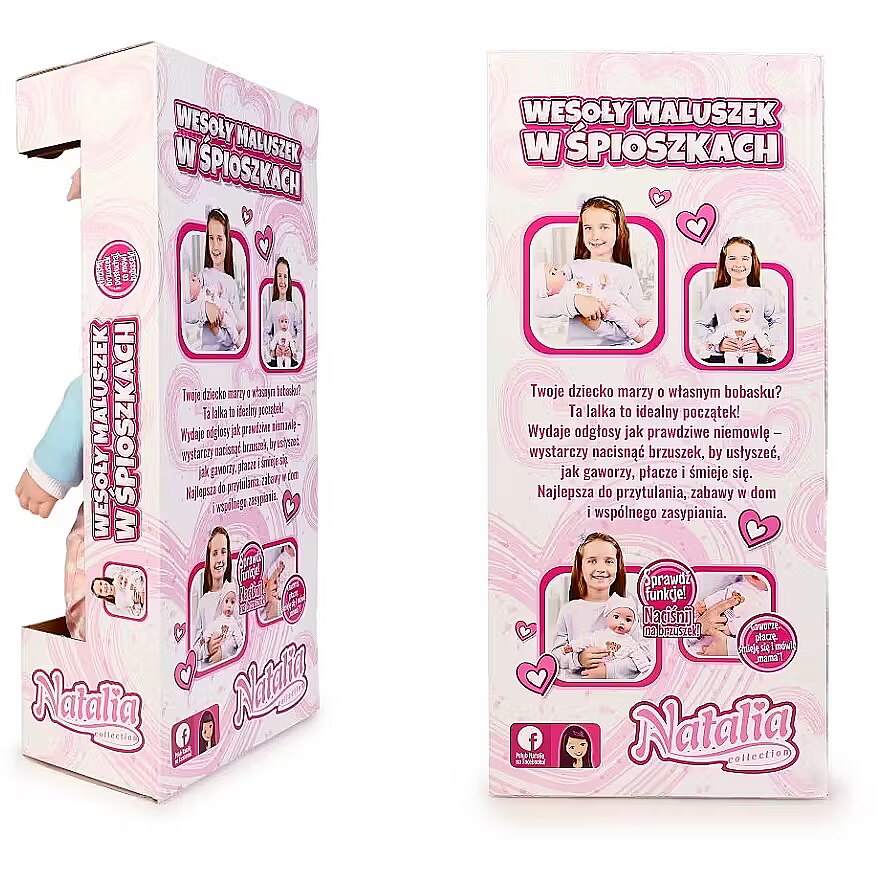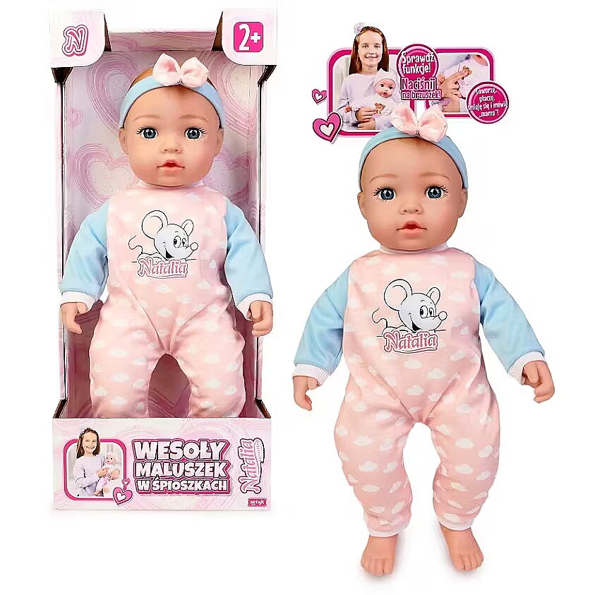 Description - Set includes: soft 45 cm doll, features: pressing the tummy activates sounds such as baby laughter, crying, and babbling; the baby says mama and dada.