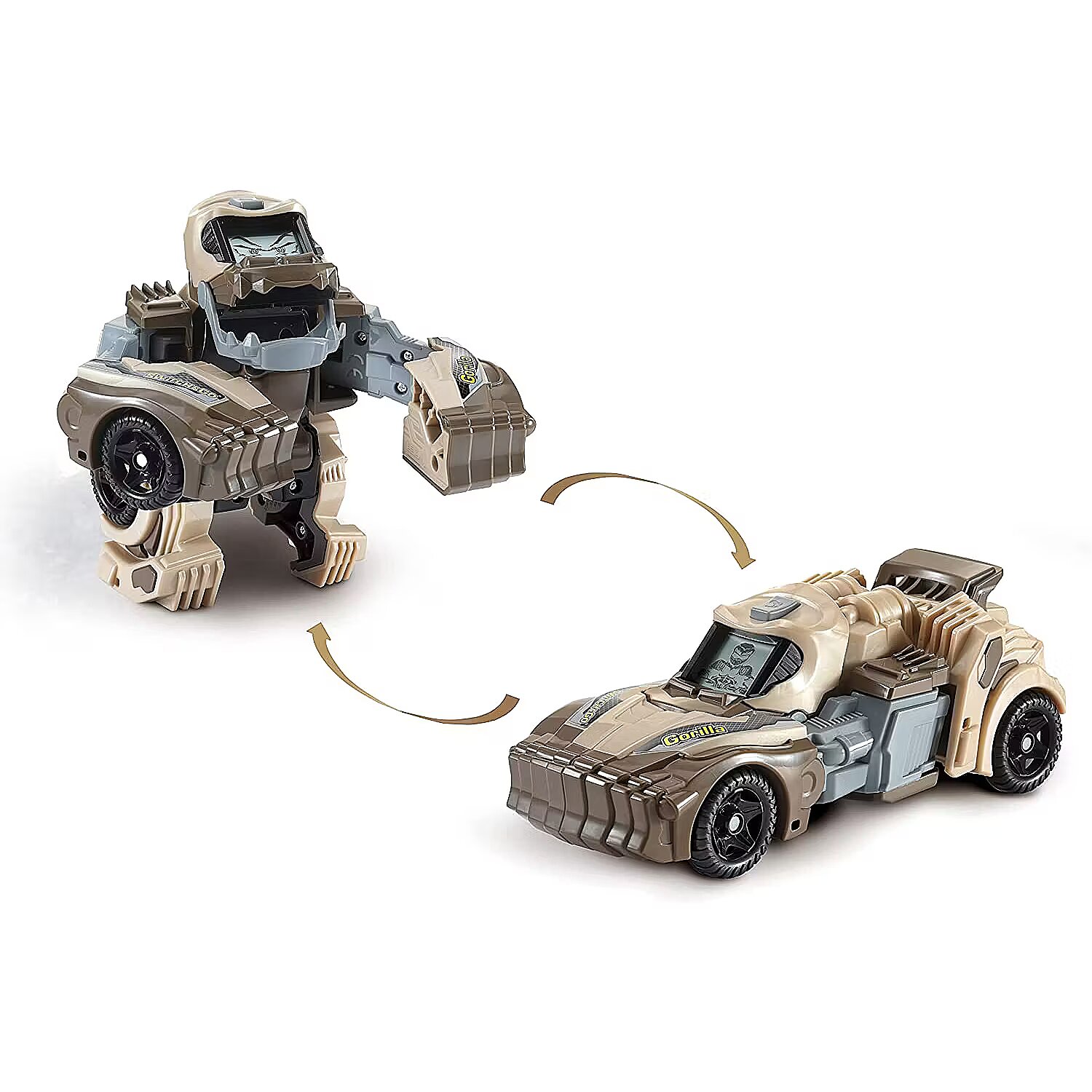Technical_details - Switch & Go - Gorilla, game character Transform the strong gorilla into a fast car and back again in just a few simple steps! When the button on the back is pressed, the gorilla drums its fists on its chest. Also, there are cool animations on the screen! Type: game character EAN: 3417765513046 Manufacturer number: 80-551304 Series: Switch & Go Language: German Age recommendation: from 36 months to 8 years Target group: kindergarten children, school children Material: Plastic audio: yes Volume Control: Yes Safety: Childproof battery compartment, automatic switch-off Lighting: yes Warnings: Caution: Not suitable for children under 36 months! Warnings: Attention: Danger of suffocation due to small parts! Battery/rechargeable battery: Type | 2xAA Battery/Accu: Voltage | 1.5 volts Accessories: available | demo batteries Dimension: Width: 145mm x Height: 178mm x Depth/Length: 163mm Weight: 340 grams
