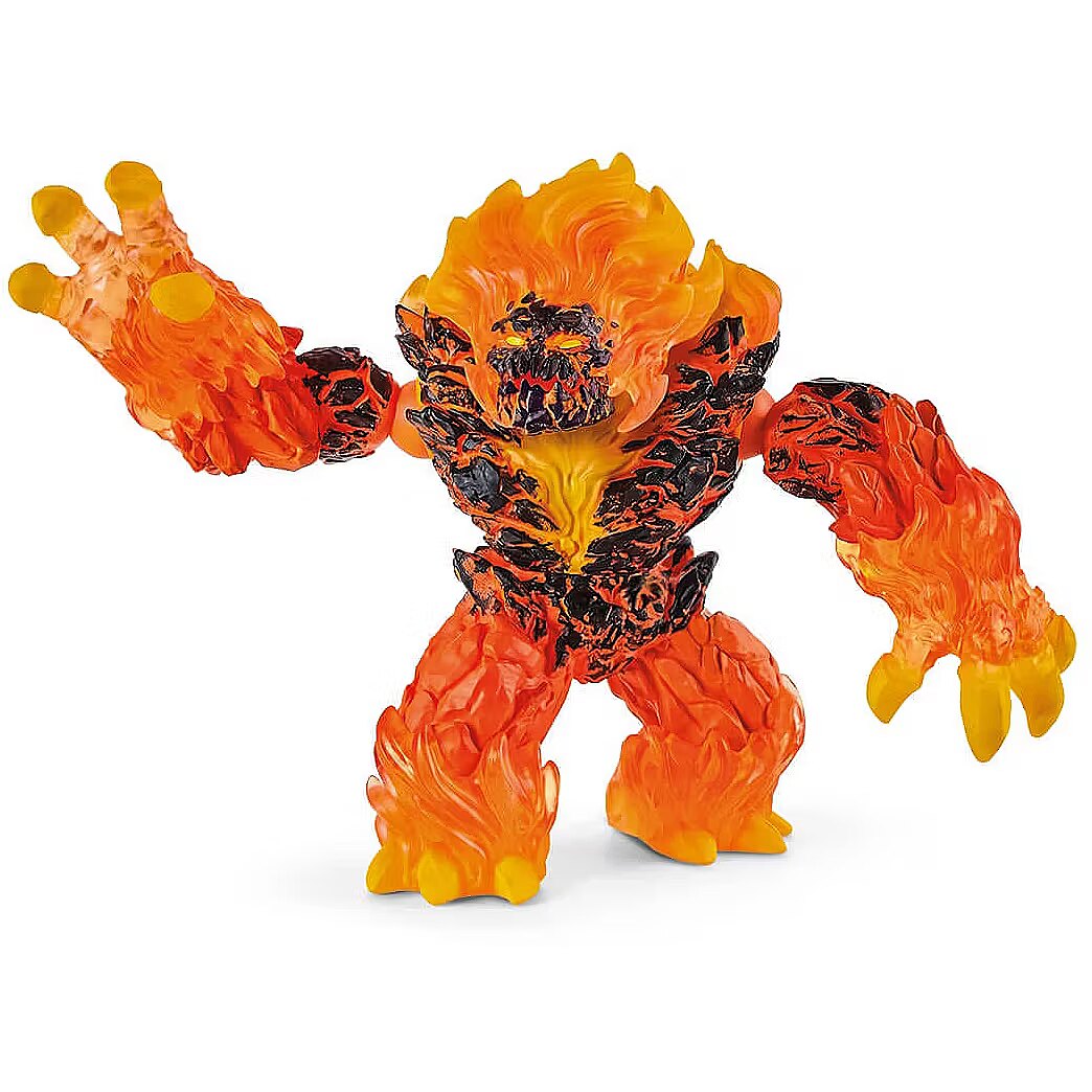 LongDesc - The Lava Smasher from schleich® ELDRADOR® CREATURES is a mighty hothead! Thanks to his rotatable upper body, the fiery giant is extremely flexible and keeps an eye on everything as he clears opponents out of the way with his powerful, movable arms. Thanks to his movable jaw, the massive Lava Smasher can open his mouth wide to blow away the enemy with his fiery breath!The Lava Smasher from schleich® ELDRADOR® CREATURES radiates so much heat that (almost) no one dares to get close. Because attackers know that everything the blazing giant touches goes up in flames. His massive body is made of molten lava rock, and a blazing mane roars on his head. Despite being so massive, the Lava Smasher is extremely agile, making him a fiendish opponent. The fact that he can completely rotate his upper body means that he never misses the slightest movement. Anyone who comes close to him is immediately discovered. With his movable arms, he grabs the enemy like lightning and shakes them hard. The Lava Smasher can also move his jaw: As soon as he opens his sparking mouth, his blazing fiery breath escapes - and it not only smells of burned rock, it's also unbearably hot!