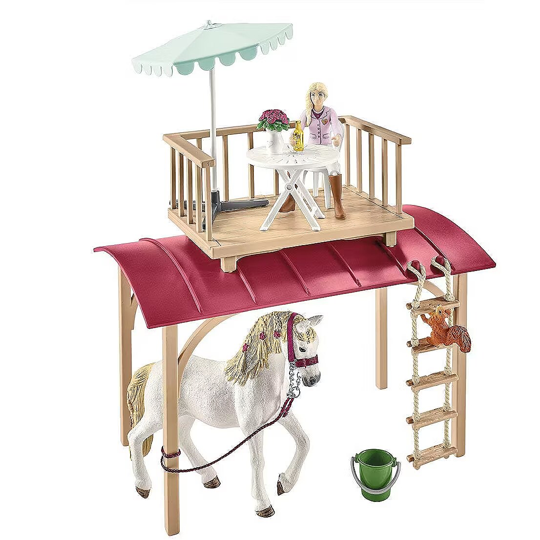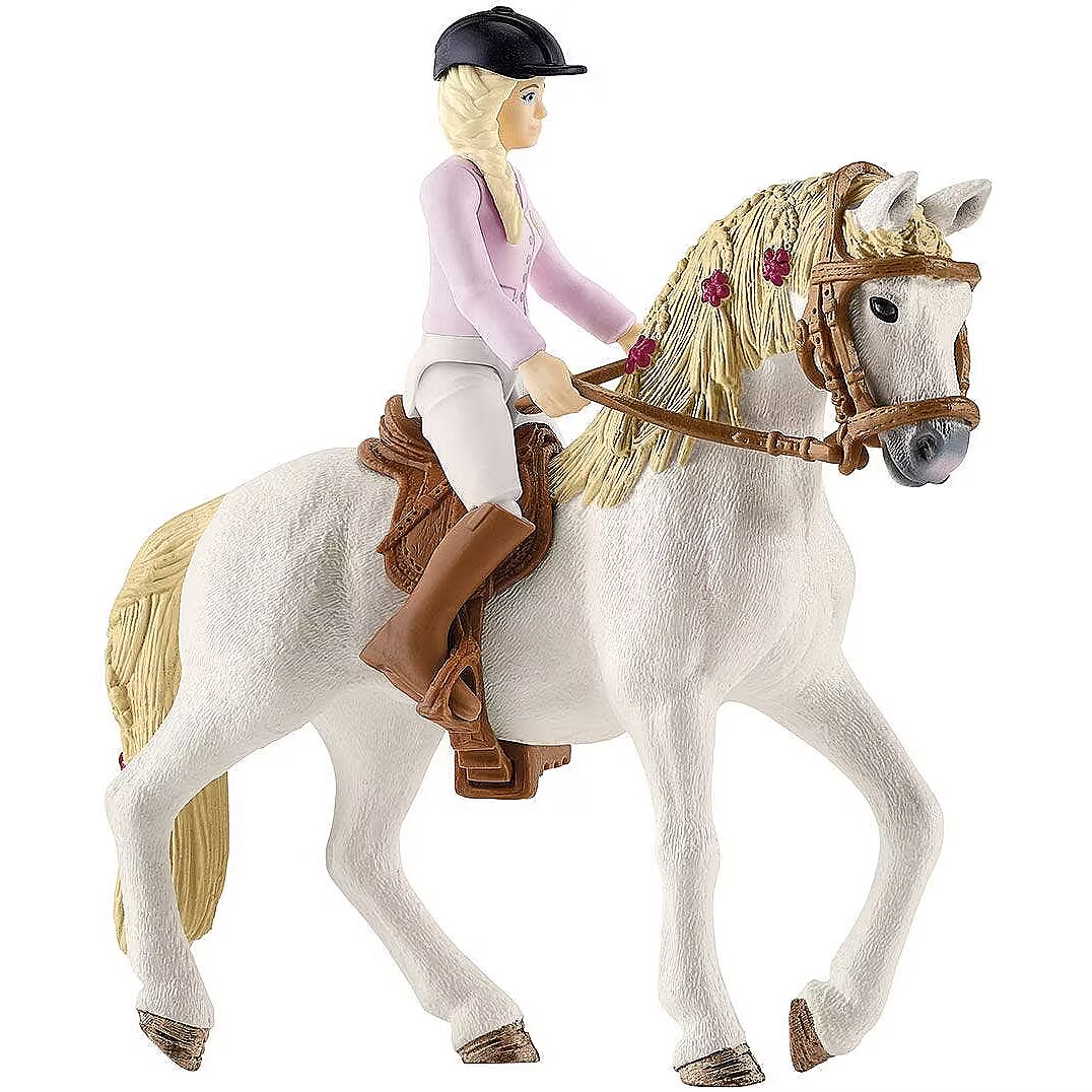 Technical_details - Type: game character EAN: 4059433524290 Manufacturer number: 42593 Series: Horse Club Contents/Equipment: 1 fully articulated figure, Andalusian mare, 1 squirrel, caravan, 2 lanterns, ladder, chair, parasol, terrace table, sofa, living room table, lamp, flower box, rope ladder, 2 winner's ribbons, saddle, bridle, reins, halter, rack , comb, brush, 1 bale of straw, bucket, apples, 2 pillows, campfire, bottle, 2x grill stick with sausages, 2 cups, 2 mugs, key, potted plant, 3 tree trunks, stickers, assembly instructions Age recommendation: from 5 years to 12 years Target group: school children, young people Material: Plastic Warnings: Caution: Not suitable for children under 36 months! : Attention: Danger of suffocation due to small parts!