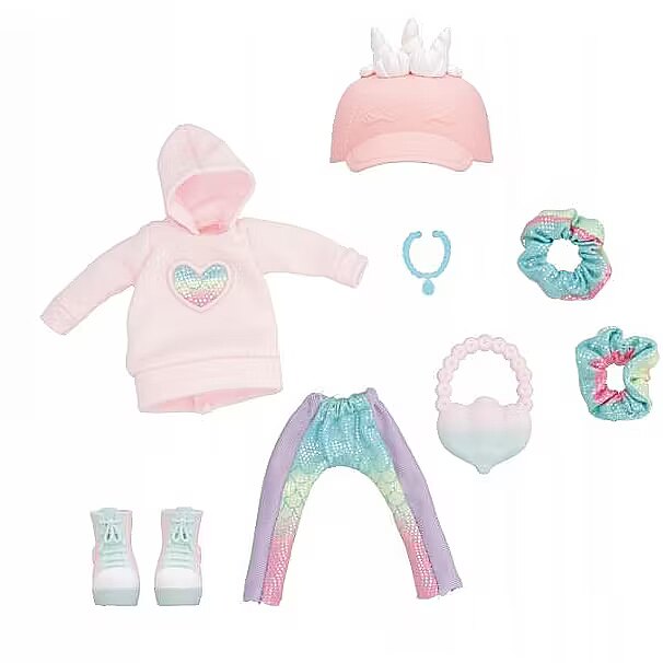 Packaging content - Accessories included in set - Doll bag, Doll hat, Doll headband, Doll shoes, Doll socks, Necklace