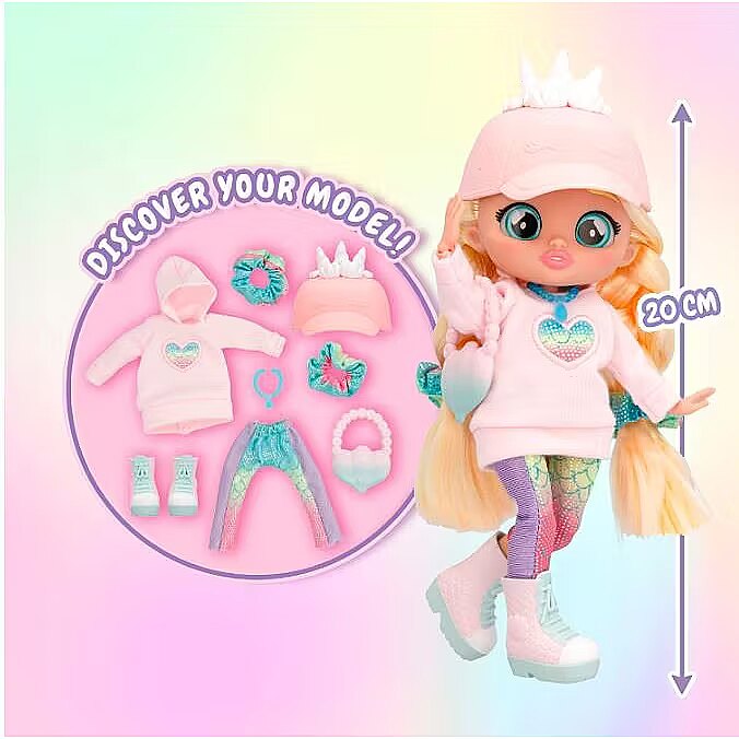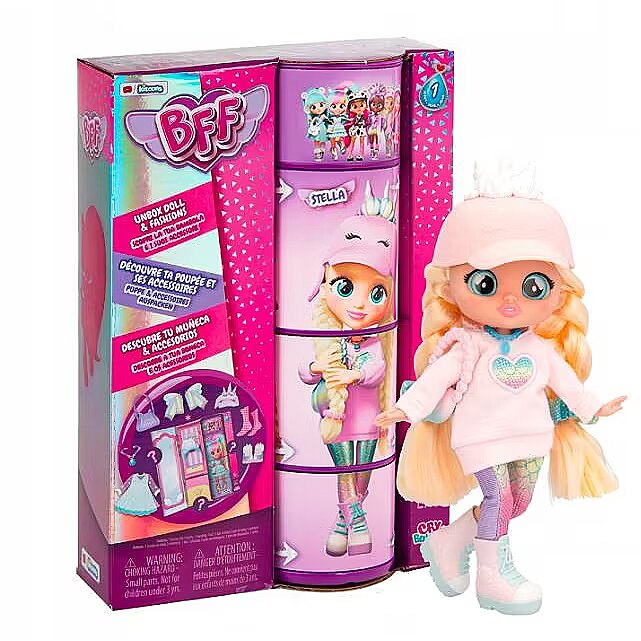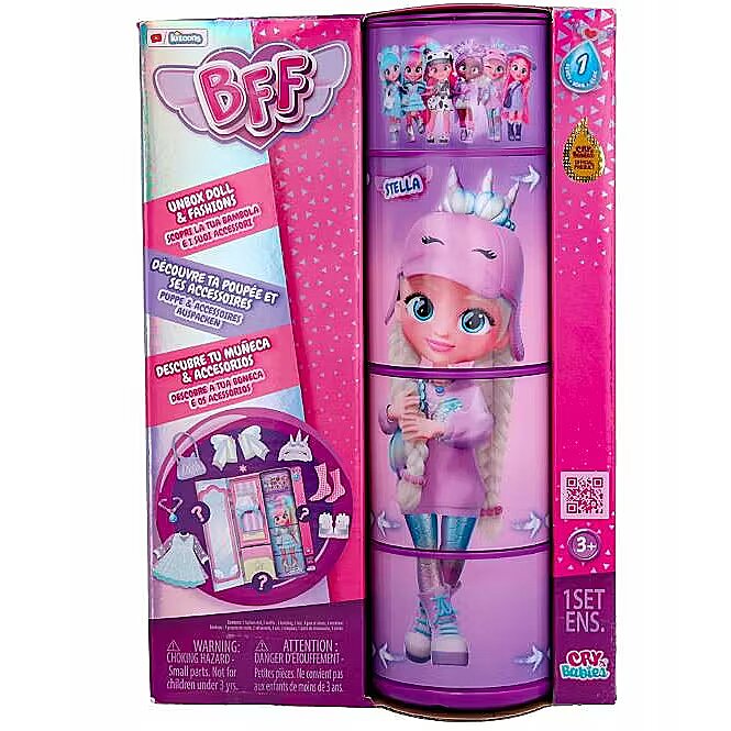 LongDesc - Meet the new BFF’s! Now your favourite characters from Cry Babies Magic Tears have grown up and are teens! They are 13 years old and have many adventures. There are 6 characters to collect, they all wear a trendy and fashionable outfits. They have 15cm long colourful hair, glass eyes and a fully articulated body! Which BFF will you find? Turn the tube to find out! Unbox and discover their wardrobe together with 9+ surprises: 2 pieces of clothing, a bag, a headband or a hat, a pair of matching shoes with a pair of socks and a necklace!
