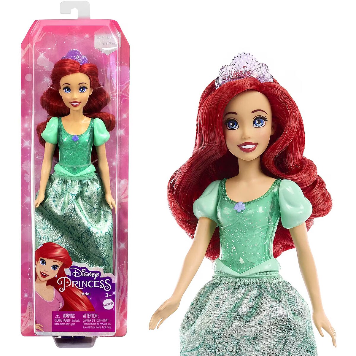 LongDesc - Meet this Disney Princess Ariel doll, inspired by the determined and independent heroine from the beloved animated Disney The Little Mermaid movie. This posable fashion doll is shown in a sparkling outfit and accessories that include shoes and a tiara. In her signature look inspired by the movie, this Ariel doll is ready for any adventure! Doll cannot stand alone. Colours and decorations may vary.