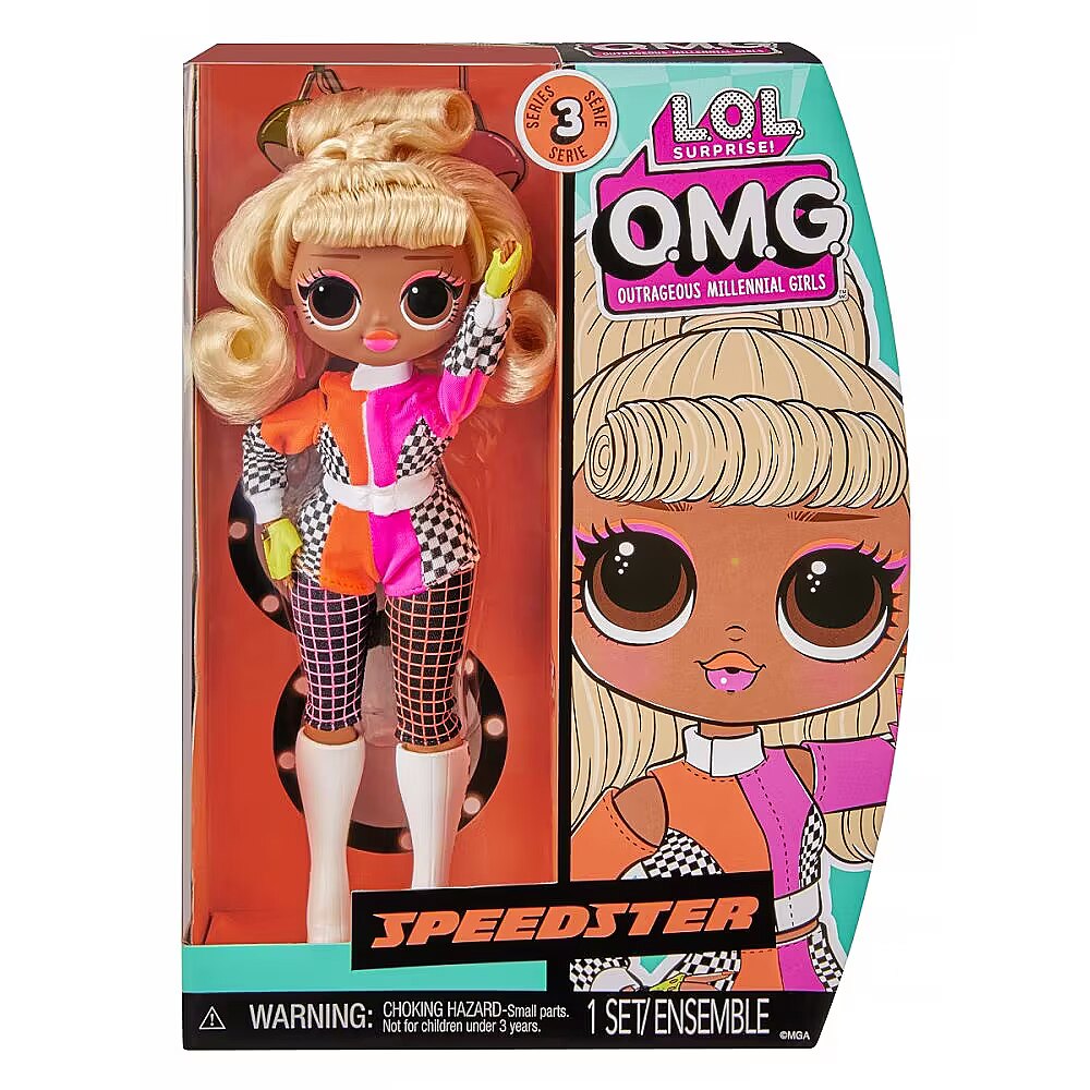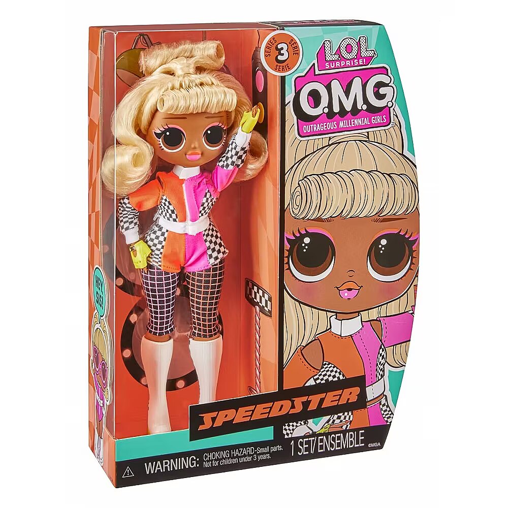LongDesc - Why slow down when u can speed up? Why follow when u can pass? Why come in 2nd when u can come in 1st? – Speedster The original fan favorite L.O.L. Surprise O.M.G. fashion dolls are back with multiple surprises: say hello to Speedster, the big sister to adored character, Drag Racer! Speedster is always ready to be ahead of the game and enjoys the thrilling feeling that comes with speed. This re-release of Speedster showcases her stunning features, styled hair, her own showstopping racecar outfit, and comes articulated for tons of posing opportunities. Each box includes a L.O.L. Surprise O.M.G. fashion doll, a fierce outfit, detailed accessories, shoes, a hairbrush, and a doll stand. Collect all 3 re-released L.O.L. Surprise O.M.G. dolls: Cosmic Nova, Groovy Babe, and Speedster. L.O.L. Surprise fashion dolls with stylish hair, outfits and many detailed accessory pieces make a perfect toy for kids, including 4 years old and up for imaginative pretend play! As gifts for any special occasion, dolls provide hours of social play with siblings and friends! From MGA Entertainment, creators of L.O.L. Surprise fashion and collectible dolls, Rainbow High™ fashion dolls, Na Na Na Surprise dolls, Bratz® fashion dolls, MGA's Dream Ella™, MGA's Glitter Babyz™, Lalaloopsy™, Baby Born® Surprise baby dolls and collectibles, Little Tikes® kids' toys and many other favorite brands.
