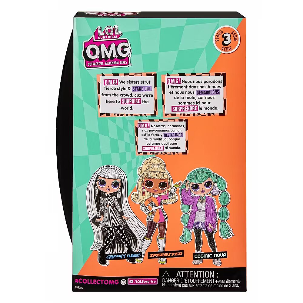 Description - L.O.L. Surprise OMG HoS Doll S3 - Speedster Original O.M.G. dolls The Fashion Dolls are back and more feisty than ever! Get Re-launched O.M.G. Characters from series 3 in a brand new window box! 3 fan-favorite O.M.G characters re-launched: #588566 Cosmic Nova, #588573 Groovy Babe and #588580 Speedster (sold separately). They look great. they have beautiful hair and their own dazzling style. Includes 1 REAL fashion doll with movable and posable parts, doll stand and hairbrush. Packaging with a window.