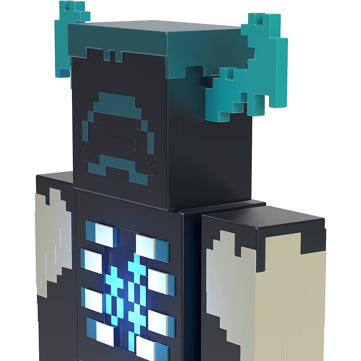 LongDesc - With sensors in its head, the Minecraft Warden action figure doesn't let the fact it is blind prevent it from attacking intruders. True to the videogame in every detail, players can activate the large Minecraft figure's battle lights and sounds by pressing the button on its chest. Push and hold the button to trigger attack mode! Made for game fans who love to bring Minecraft into the real world, this hostile mob is sure to be a hit and a great gift. Colours and decorations may vary.