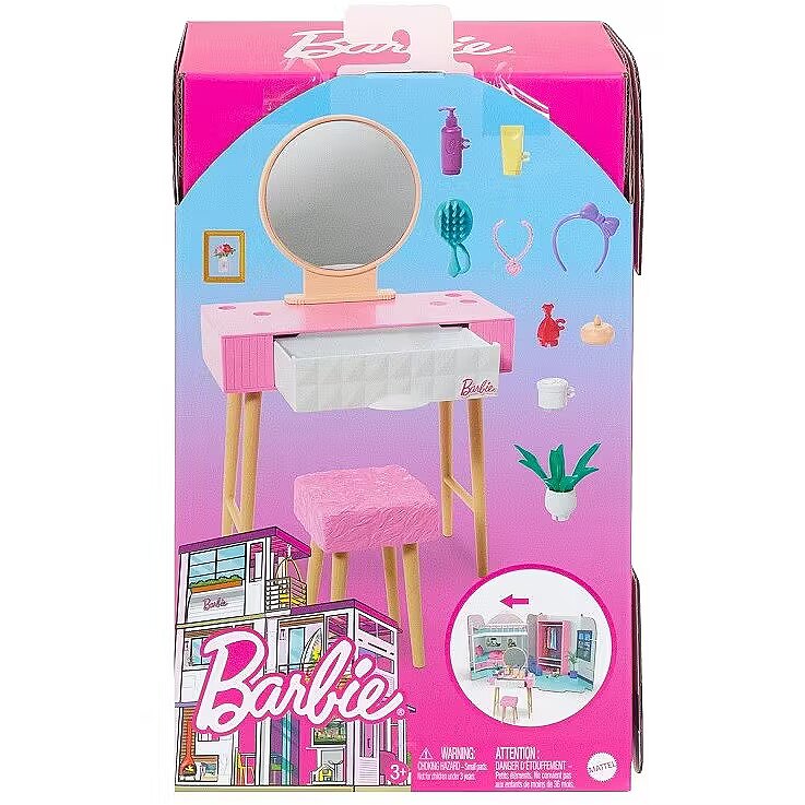 LongSummaryDescription - Barbie House Decor Set with Vanity. Product type: Doll furniture set, Recommended age (min): 3 yr(s)