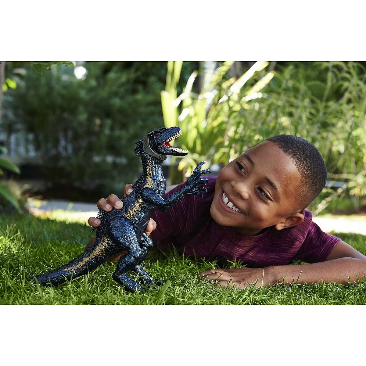 LongDesc - This unique and intimidating Track 'N Attack Indoraptor inspired by the Jurassic World franchise has 3 attack features, all with light and sound effects! It has the huge claws this notorious hybrid dinosaur is known for and designed with a jungle-coloured deco with irridescent effect. It's a striking figure that comes with removable tracker headgear. Makes a great gift for dinosaur fans ages 4 years and up. Bring dinosaurs 'TO LIFE' using Augmented Reality! Scan the hidden Tracking Code in the free Jurassic World Facts App with a compatible smart device (Android or iOS, not included) to unlock AR experiences and games! Colours and decorations may vary.