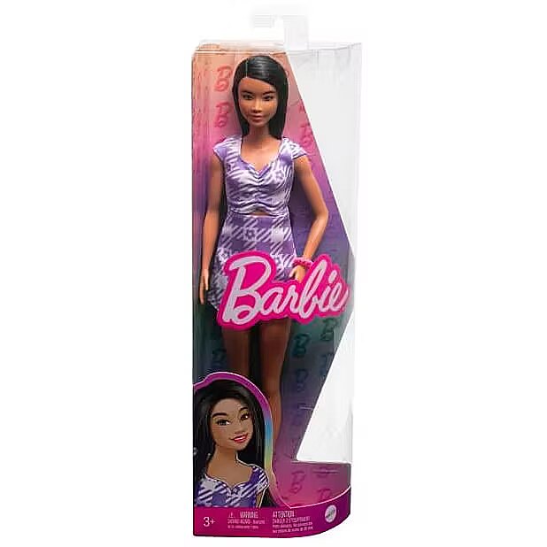 Description - Barbie Fashionistas celebrate diversity and offer endless possibilities for storytelling and fashion exploration. With this inclusive range of dolls, kids can see how fun it is to express personality through style! They're an ideal gift for fashion-loving kids everywhere. Each sold separately, subject to availability. Dolls cannot stand alone. Colors and decorations may vary. Designed to reflect the world kids see today, this diverse line of Barbie Fashionistas showcases bright and trendy styles that make for endless storytelling possibilities. This Barbie doll has a tall body type and black hair styled in soft waves! A pink scrunchie and low-heel sandals add the perfect little touches to make her personality pop. She turns heads in a lavender gingham dress with a ruched bodice and delicate waist cut-out! Designed with a zipper, the reusable vinyl bag can store a doll or Barbie fashions and accessories. Kids can use it for on-the-go-play and decorate it with their own art supplies, like stickers! More variety makes collecting Barbie Fashionistas dolls even more fun -- they're the perfect gift for kids 3 years and older! (Each sold separately, subject to availability).