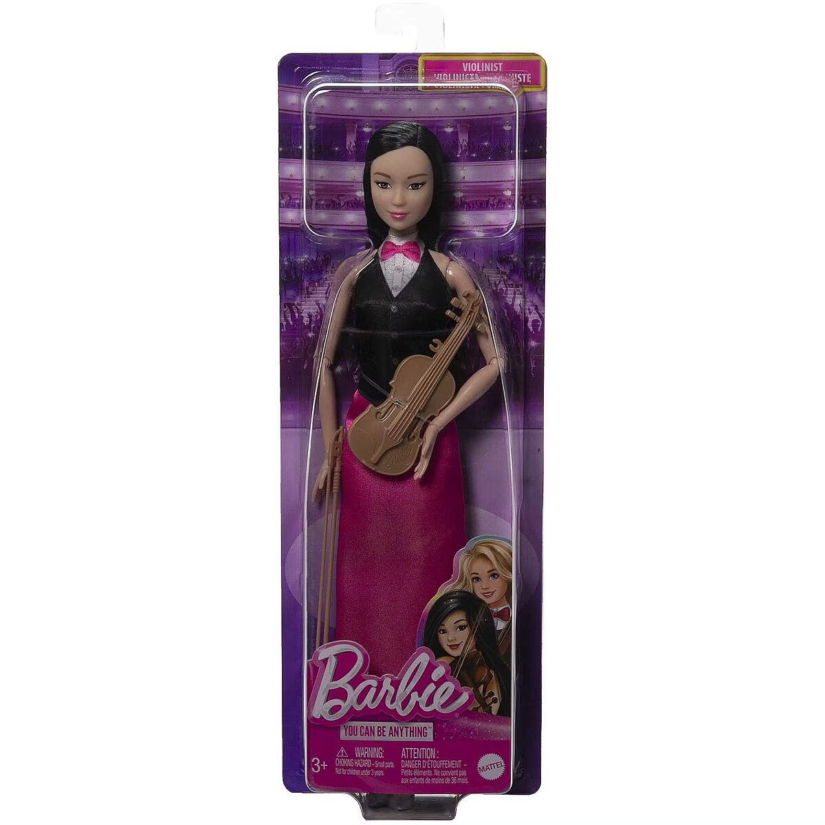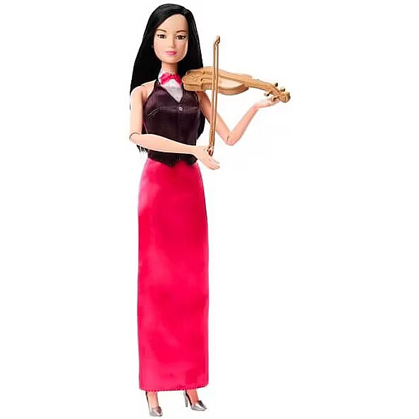 LongDesc - The talented Violinist Barbie doll takes the stage! This magnificent musician comes with a violin and bow and she's ready to steal the show wearing an elegant dress with a tuxedo vest. Barbie doll bends at her shoulders and elbows so kids can really help her 'play' the violin. Kids can dream big and imagine everything they can become with Barbie Career dolls! Doll cannot stand alone. Colours and decorations may vary.