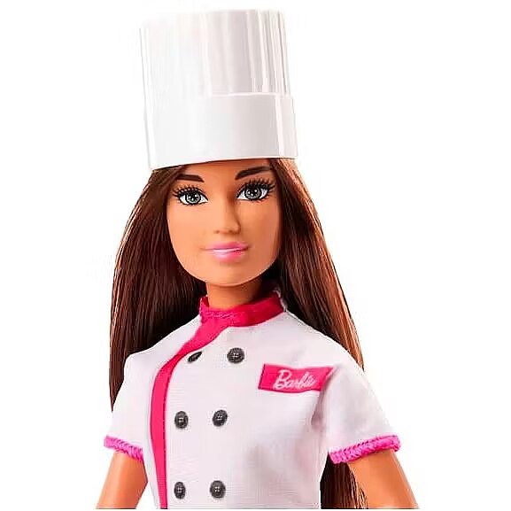 LongDesc - Barbie doll loves to whip up delicious treats as a professional pastry chef! Always ready to try new recipes, she's dressed in her uniform, complete with a chef's jacket and hat. Also included is a sweet cupcake on a plate to serve her customers. Kids can dream big and imagine everything they can become with Barbie Career dolls! Doll cannot stand alone. Colours and decorations may vary.