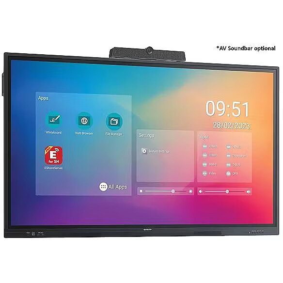 LongSummaryDescription - Sharp PN-LC652. Display diagonal: 165.1 cm (65"), Display technology: LCD, Display resolution: 3840 x 2160 pixels. RMS rated power: 30 W. Product colour: Black, Orientation: Horizontal, Screen shape: Flat. USB connector type: USB Type-A, USB Type-B, USB Type-C. Processor manufacturer: ARM, Processor family: ARM Cortex, Processor architecture: ARM Cortex-A55