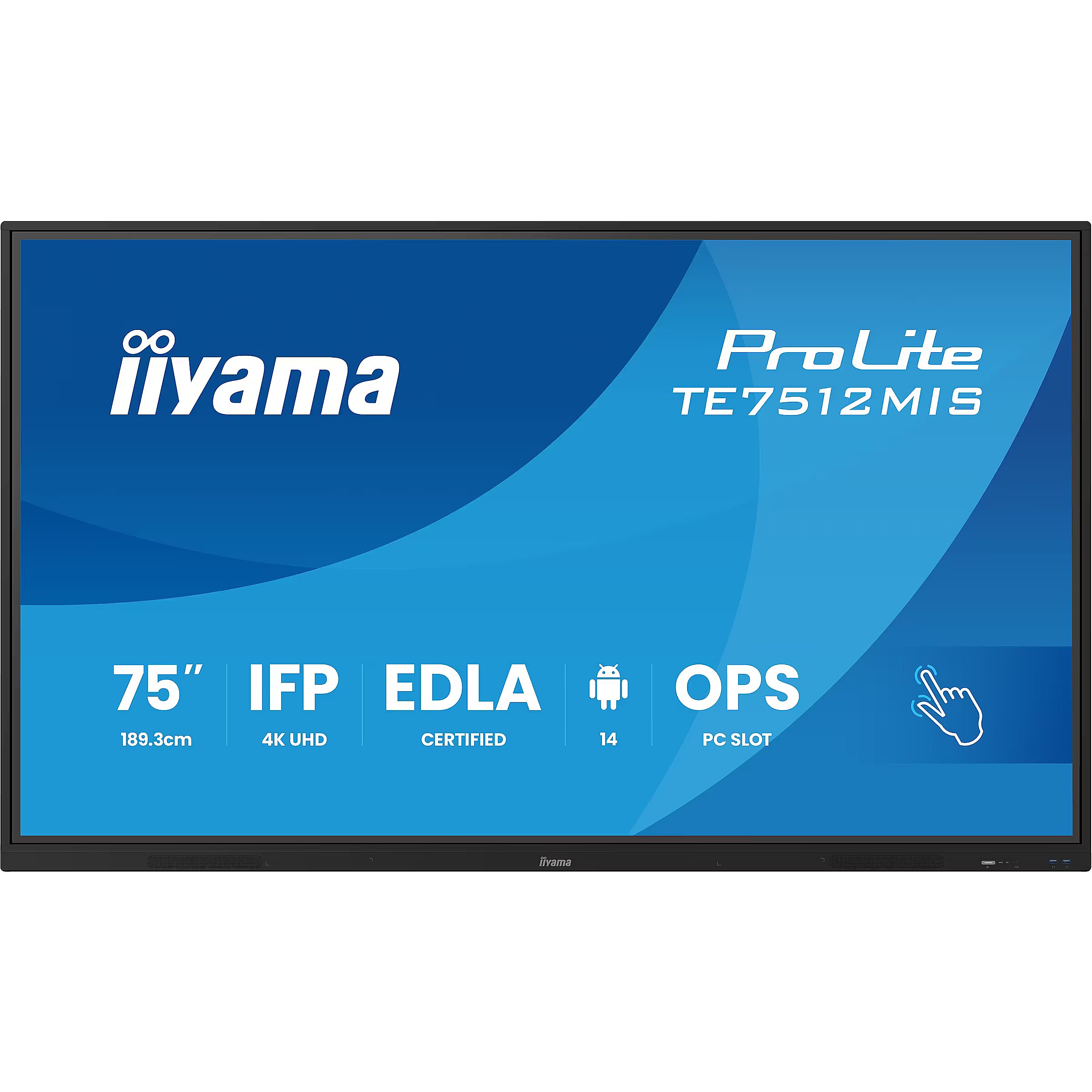 Title - iiyama TE7512MIS-B4AG Signage Display Interactive flat panel 190.5 cm (75") LCD Wi-Fi 400 cd/m² 4K Ultra HD Black Touchscreen Built-in processor Android 24/7
