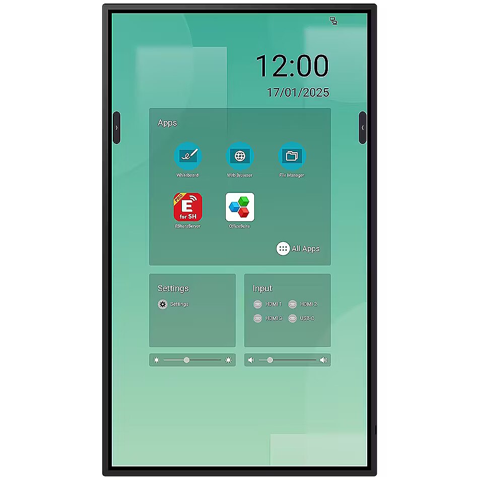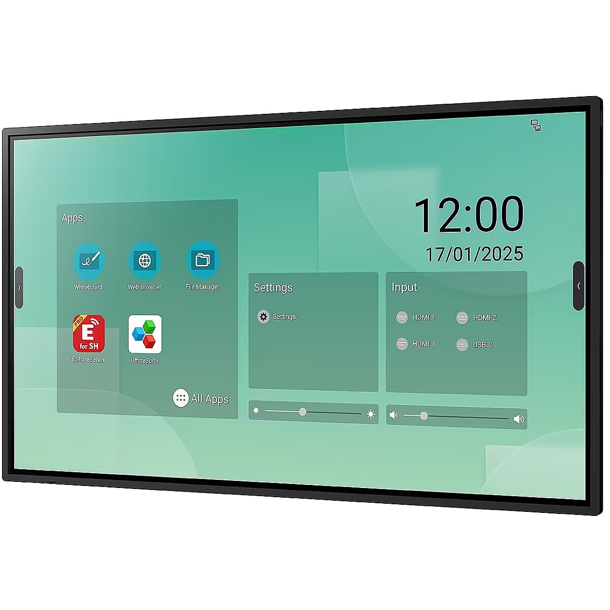 LongDesc - Multi-purpose for interactive engagementsFor best-in-class touch performance and value, the Sharp LM series commands feature-rich professional capabilities for small meeting spaces and interactive signage applications. An integrated System on Chip (SoC) with Android 14 CTS-compliant Operating System offers the most up to date features and security for seamless out-of-the-box collaboration.Boosting creativity in group collaboration, the Sharp LM series features intuitive Pen-on-Paper writing, a built-in whiteboard, annotation overlay mode and Windows Ink support. Using the on-board EShare app, content can be wirelessly shared from any personal device to the display without the need for apps or dongles. A single USB-C cable transmits data, video/audio output and power delivery between notebook and display for the simplest and seamless BYOD workflows.With its 4-sided uniform slim bezel design, the Sharp LM series supports installations in both landscape and portrait as well as tilted desk. Dedicated features including hide side bars, application lock and a built-in web browser make the Sharp LM series the perfect display for budget-driven interactive signage applications.