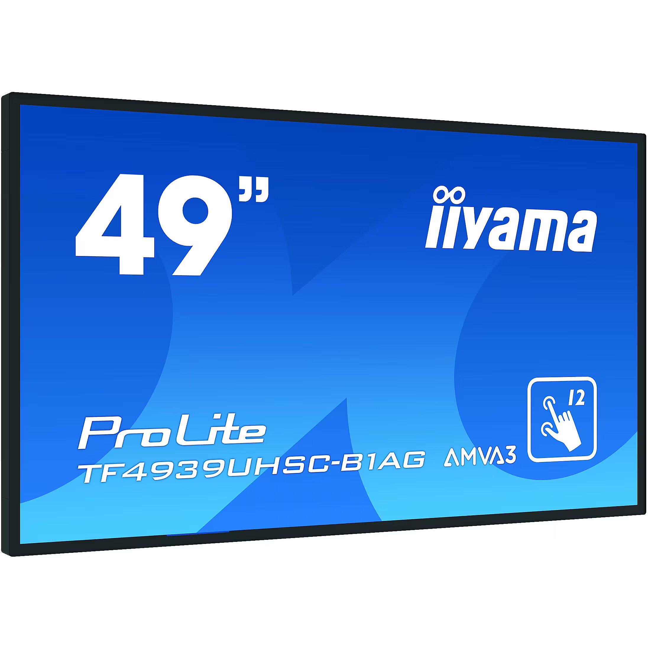 LongSummaryDescription - iiyama ProLite TF4939UHSC-B1AG. Display diagonal: 124.5 cm (49"), Display resolution: 3840 x 2160 pixels, HD type: 4K Ultra HD, Display technology: LED, Response time: 8 ms, Native aspect ratio: 16:9, Viewing angle, horizontal: 178°, Viewing angle, vertical: 178°. Built-in speaker(s). Product colour: Black