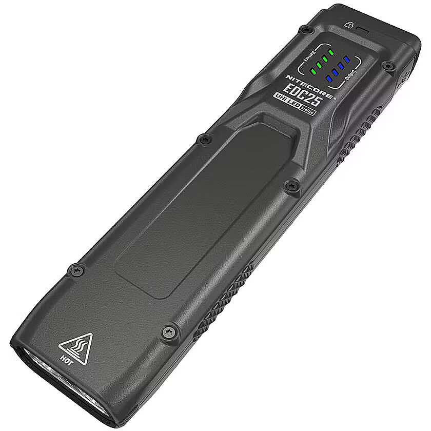 Description - The NITECORE EDC25 is a compact and powerful everyday carry (EDC) flashlight, known for its slim, flat design that makes it easy to carry. It features: High Output: A maximum output of 3,000 lumens, powered by two NiteLab UHi 20 LEDs, with a beam distance of up to 300 meters. Multiple Modes: Offers 5 brightness levels (Ultralow, Low, Mid, High, Turbo) and a Strobe mode. User-Friendly Design: Equipped with dual tail buttons for intuitive operation and a customizable button for quick access to Turbo or Strobe. It also has power and brightness level indicators. Rechargeable: Features a built-in 1700mAh Li-ion battery with USB-C fast charging. Durable Build: Constructed from aluminum alloy with a HA III military-grade hard-anodized finish, it's rated IP54 for water and dust resistance and is impact resistant up to 1 meter. Smart Features: Includes Advanced Temperature Regulation (ATR) to prevent overheating, Advanced Power Cut-Off (APC) for ultra-low standby power consumption, and a brightness level memory function. It also has two lockout modes (Half and Full) to prevent accidental activation. The EDC25 is designed for both general daily use and tactical applications, offering impressive performance in a highly portable form factor.