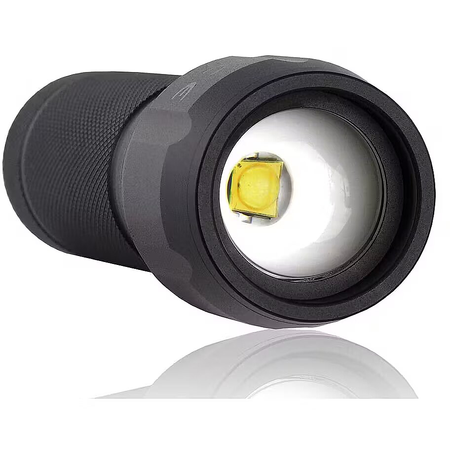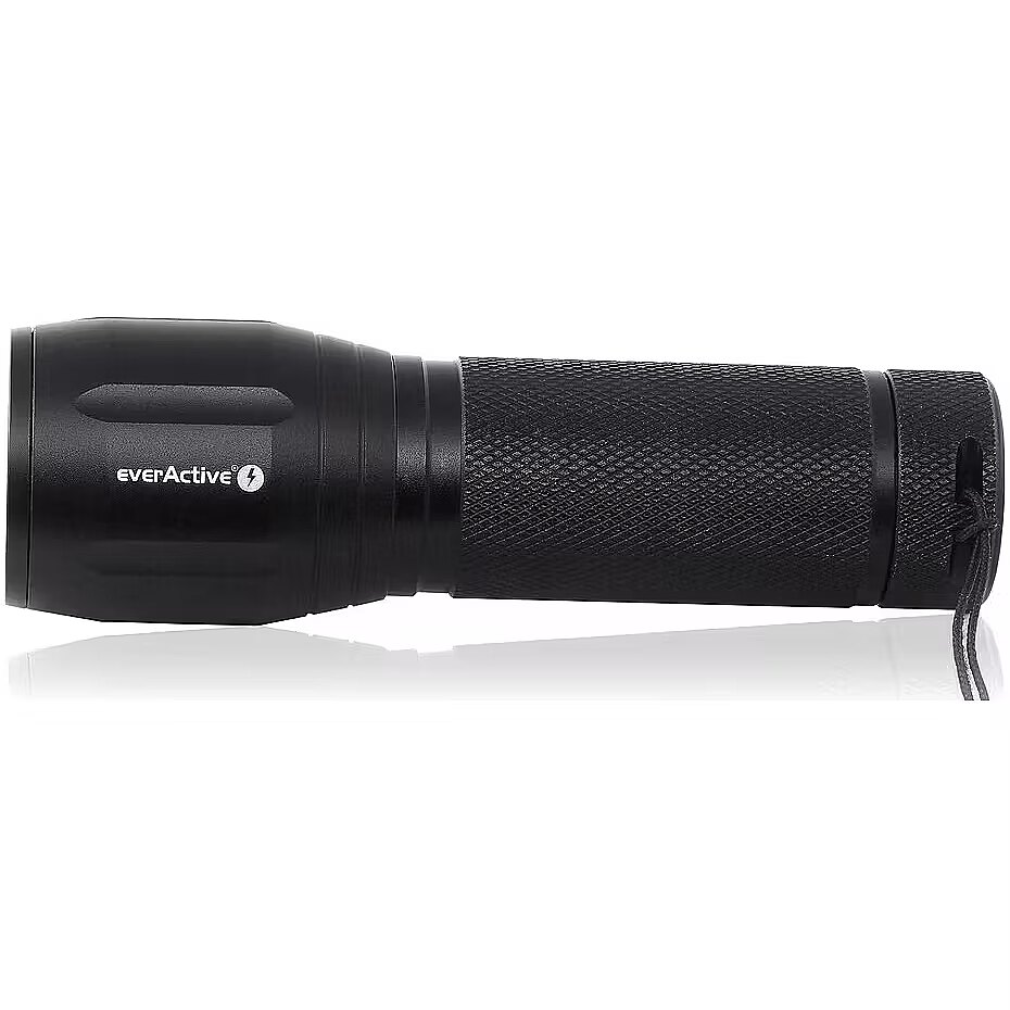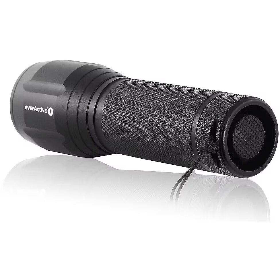 Description - LED flashlight everActive FL-300+ Original Cree XP-G3 LED, light output - 350 lumens! 550 lumens with the use of additional adapter and Li-ion battery Focus function - beam adjustment Waterproof Housing made of durable aluminum 3 lighting modes: 100%, 25%, strobe Power supply: 3x AAA/ R03 (not included)