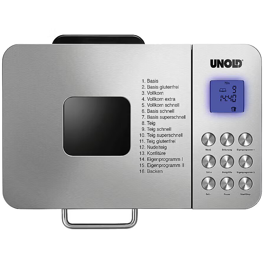 ShortSummaryDescription - Unold 68456, 1 kg, Delayed start timer, Viewing window, Keep warm function, 550 W, Stainless steel