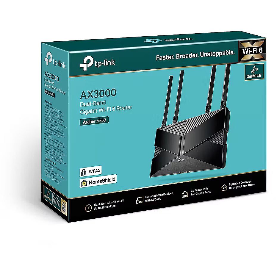 ShortSummaryDescription - TP-Link Archer AX53, Wi-Fi 6 (802.11ax), Dual-band (2.4 GHz / 5 GHz), Ethernet LAN, Black, Tabletop router