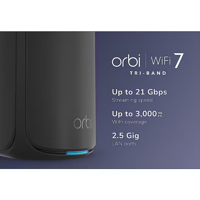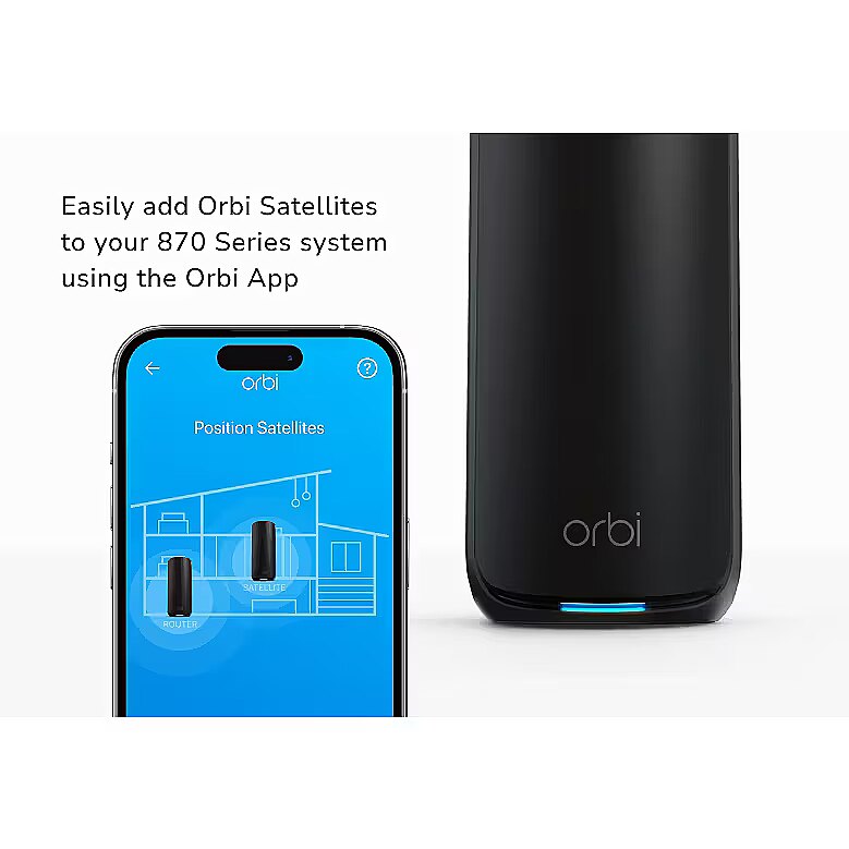 LongDesc - Expanding your Orbi™ system is as easy as the push of a button. Easily add 3,000 sq. ft. of additional WiFi 7 coverage to your existing Orbi 870 Series MeshUp to 21 Gbps speeds Speeds up to 21 Gbps† for unparalleled performance and coverage for your whole home, from the front door to the back garden and the basement to the loftTri-Band technology Tri-Band technology with Enhanced Backhaul ensures WiFi stays fast across all devices simultaneouslyExpandable WiFi coverageEasily add 3,000 sq. ft. of additional WiFi 7 coverage to your existing Orbi 870 Series mesh system360° WiFi Coverage Elegant, new design and high-performance antennas provide exceptional 360° WiFi coverage across every corner of your home, no matter the layoutReimagined speed & reliability2.5 Gbps†† Ethernet ports unlock unbeatable speed and reliability for wired connections and 2.5 Gbps wired backhaul optionEasy Set UpSimply power on Orbi satellite and set it up with the Orbi appCOVERAGE AREAConsider square footage beyond your home footprint to maximize performance and ensure coverage for outdoor areas.HOME SHAPEL or U-shaped homes may need additional satellites to extend WiFi around corners.WIRED CONNECTIONSOrbi satellites give your ultra-fast wired connections where you need them.CONSTRUCTION MATERIALSBrick and concrete weaken WiFi signals. Add-on satellites will strengthen WiFi coverage.Orbi works with any internet provider.From AT&TTM to Cox, Spectrum, Verizon, Xfinity®, and everything in between, there’s no need to worry about compatibility. Simply plug Orbi into your current modem and you’ll be enjoying whole-home WiFi in a few easy steps.Discover a superior class of WiFiBuilt on a quarter century of expertise, Orbi is fundamentally different WiFi, built for those who demand the best.