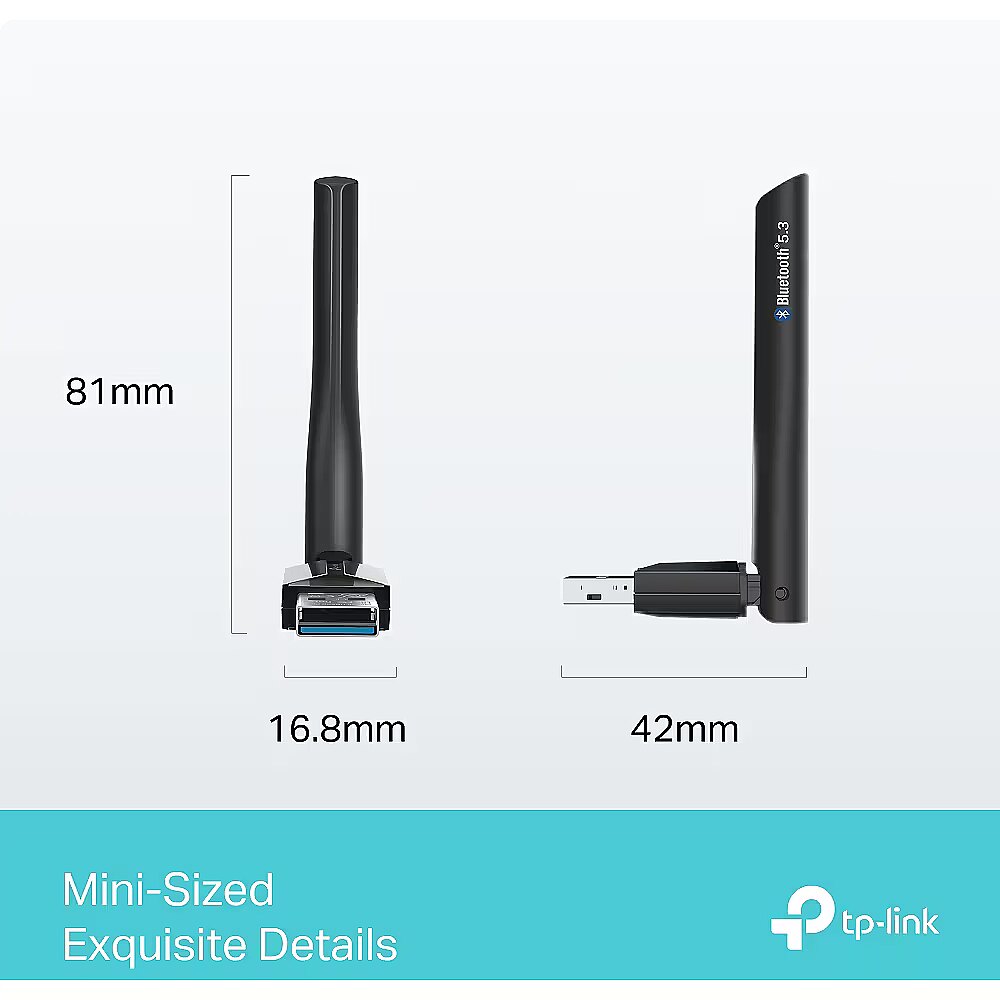 LongDesc - Bluetooth 5.3: Faster Speeds, More RobustThe cutting-edge Bluetooth 5.3 technology that inherits the high speed of last-gen versions. The latest Bluetooth 5.3 has also been enhanced in terms of reliability and security, which ensures a more robust coordination with your game controllers, headphones, keyboards and etc.Adjustable, Multi-Directional AntennaRotate and adjust the multi-directional antenna to improve user experience and performance in different environments.Link to Your Computer via BluetoothUB500 Plus makes non-Bluetooth PCs and laptops Bluetooth-capable. Just connect your Bluetooth devices to your computer and enjoy it with ease. It supports up to 7 Bluetooth devices all at once with a powerful wireless connection. You can transfer files, music, videos between your Bluetooth devices and PC with 2× faster transmission speeds.Mini-Sized — Easily Work From AnywhereA mini-sized design means you can insert UB500 Plus into any USB port—no matter whether you’re traveling or at home.Plug and PlaySimply plug into your USB port and enjoy automatic installation for setup in under a minute with Plug & Play installation for most devices!- Bluetooth 5.3 — Security and reliability improvement than last-gen Bluetooth- Wireless Connectivity – Provides stable and convenient communication between Bluetooth devices and your PC or laptop- Adjustable, Multi-Directional Antenna – Rotate and adjust the multi-directional antenna to improve user experience and performance in different environments.- Supported Operating System – Windows 11/10/8.1/7