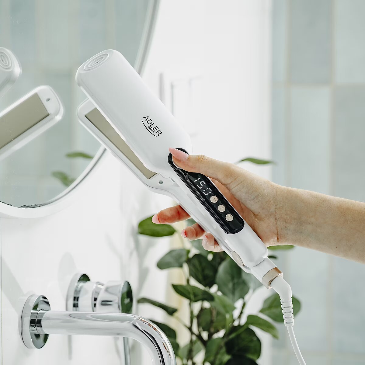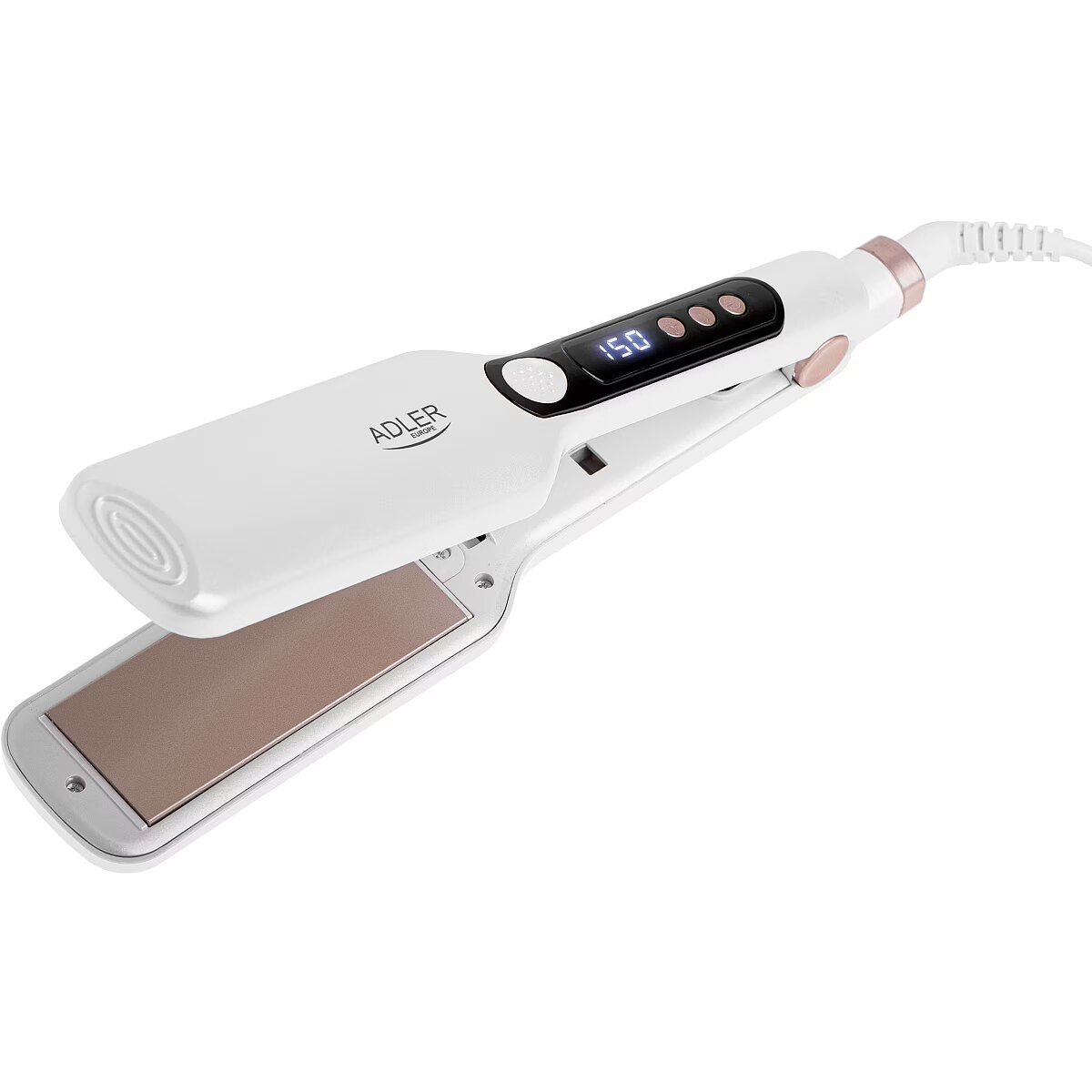 Name - Adler Hair Straightener - Wide | AD 2325 | Ceramic heating system | Display LCD | Temperature (min) 150 °C | Temperature (max) 210 °C | Number of heating levels 7 | 120 W | White