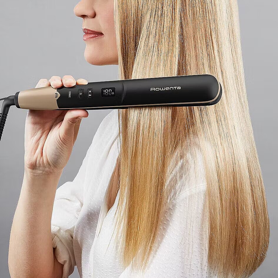 8 versatile temperatures from 140 to 210 °C on an LCD screen, with the 210 °C boost function for intense straightening and the optimal care temperature of 170°C to keep hair healthy and fully protected. One-stroke efficiency