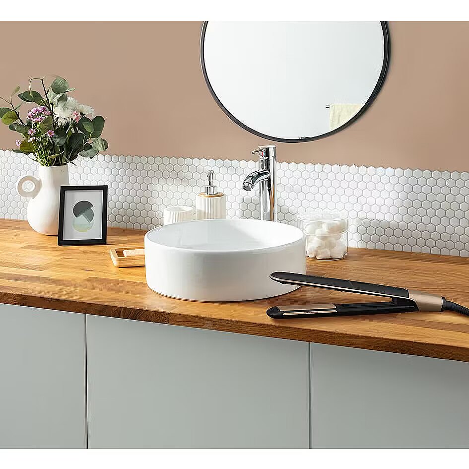 Our exceptional ceramic coating comes together with the static-reducing ionic effect for effortless glide that leaves your hair smooth, manageable and enhanced with radiant glow. 2-in-1 styling