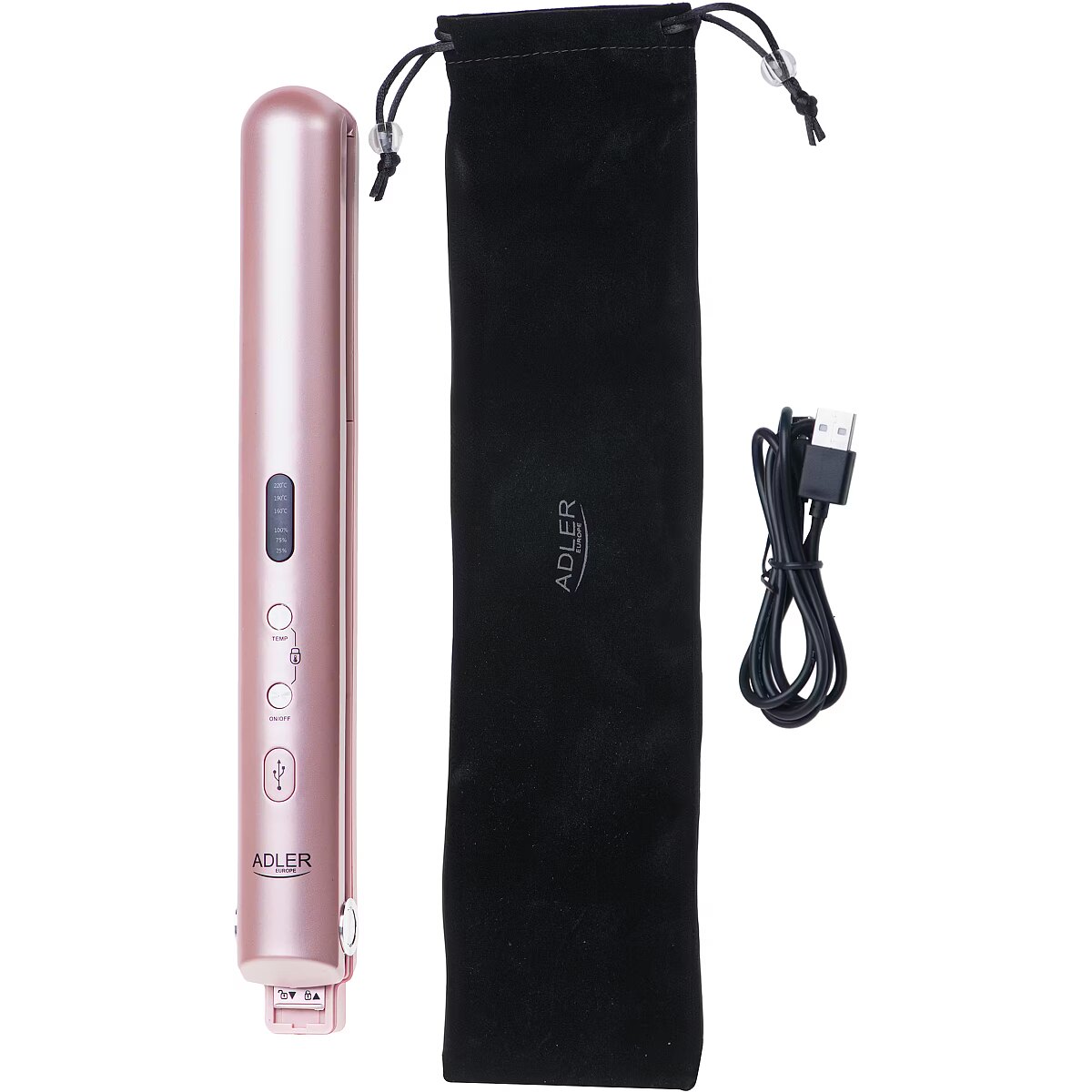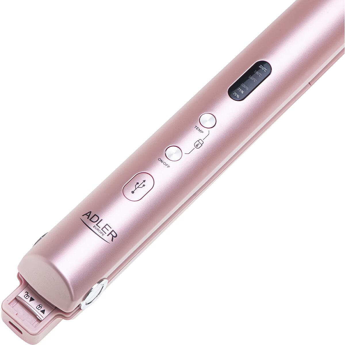 Name - Adler Cordless Hair Straightener | AD 2327 | Ceramic heating system | Display LED | Temperature (min) 160 °C | Temperature (max) 220 °C | Pink