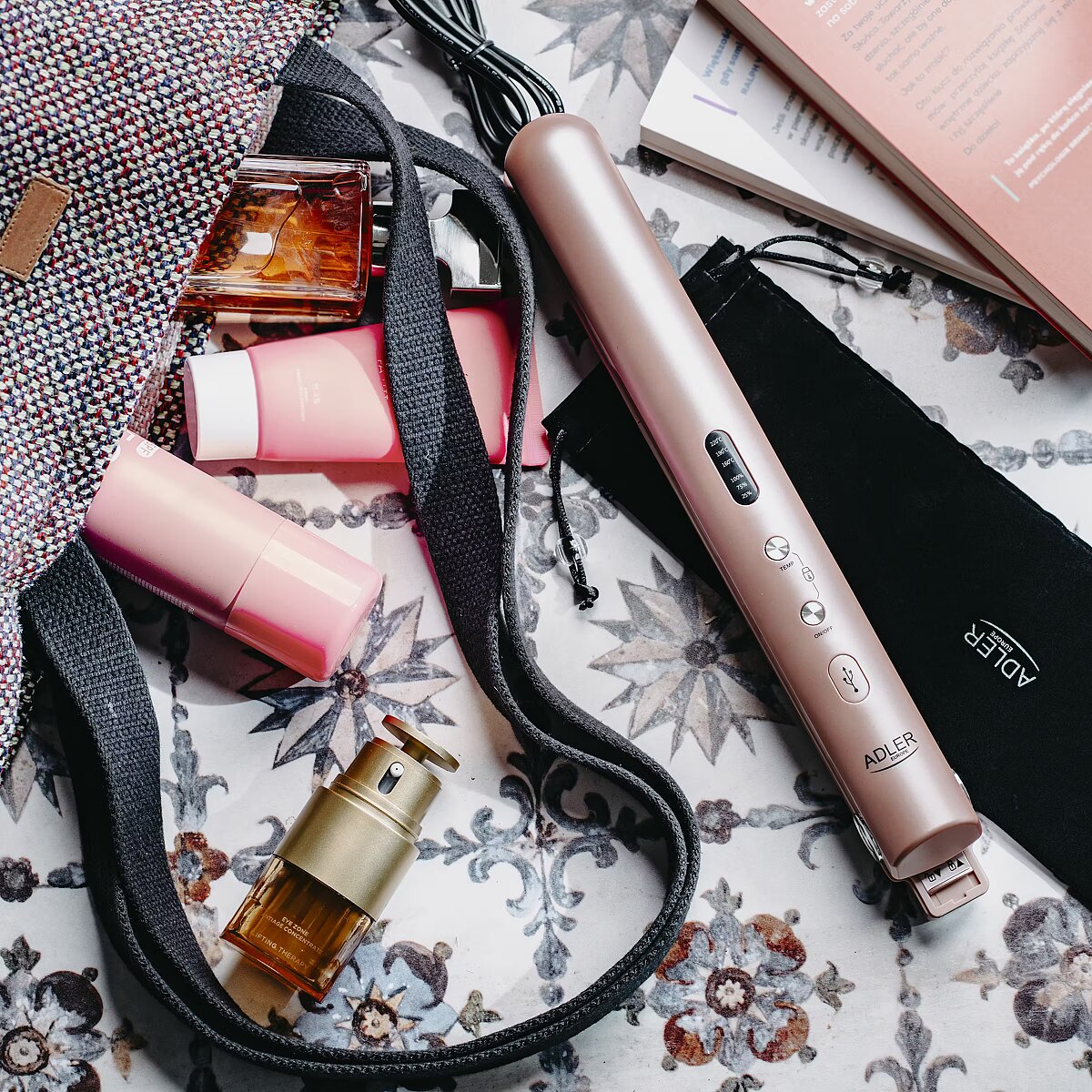 Adler Cordless Hair Straightener | AD 2327 | Ceramic heating system | Display LED | Temperature (min) 160 °C | Temperature (max) 220 °C | Pink
