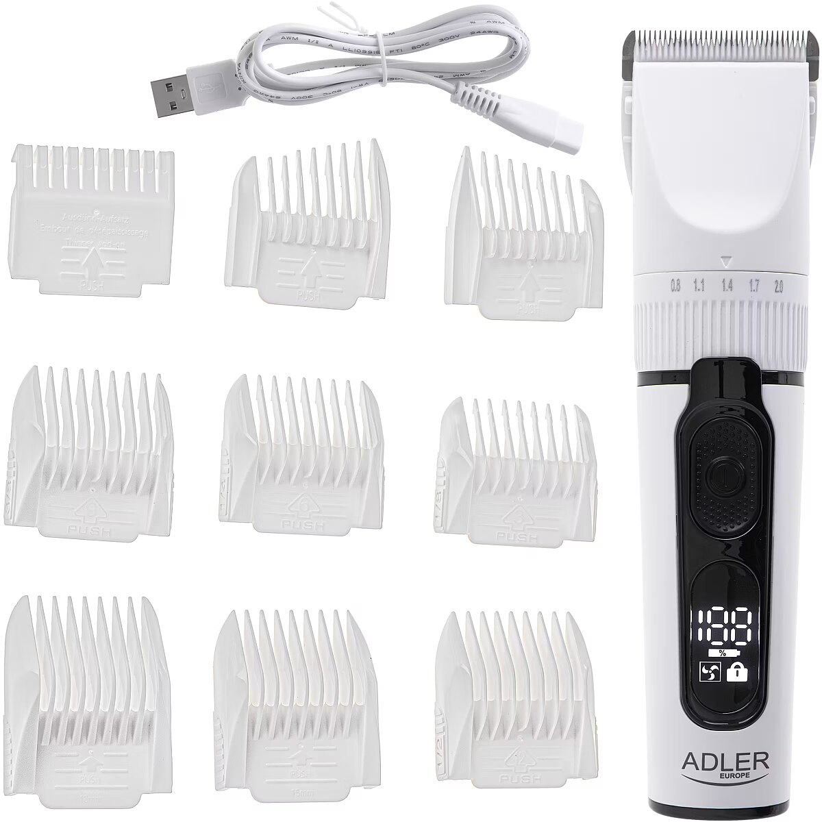 Name - Adler | Hair Clipper with LCD Display | AD 2839 | Cordless | Number of length steps 6 | White/Black