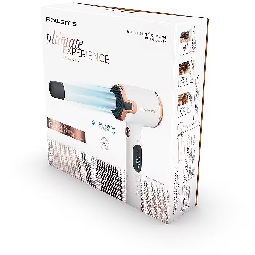 LongDescription EN - The Rowenta Ultimate Experience Air Care Curler was designed to transform the curling experience, with a disruptive L-shape for ultimate comfort and Fresh Flow Technology for gentle airflow and full protection for your hair*. Discover a game-changing styling tool with a full range of advanced features—including 8 temperature settings, a Quartz Ceramic coating, the Care Temperature preset, and so much more — for gorgeous looks from waves to curls and protected hair* enhanced with exquisite shine*. Healthy and protected hair