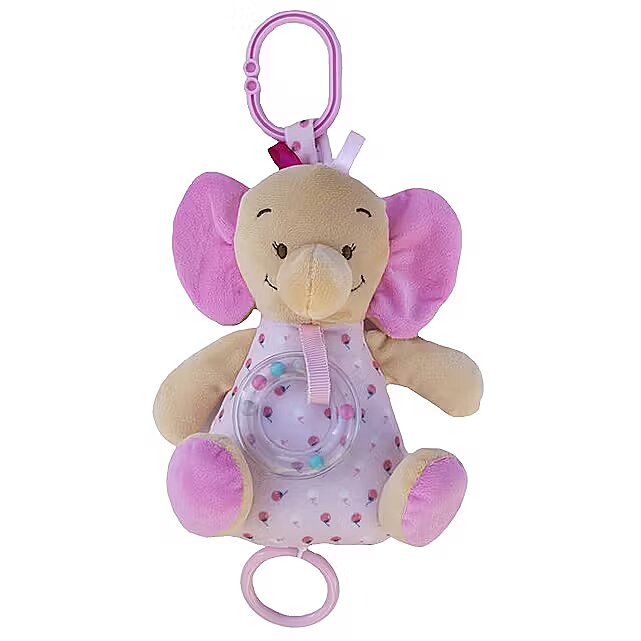 Description - Music box - pink elephant 18 cm The music box by TULILO is made of soft plush and plastic, ensuring safety and comfort during the toddler's playtime. The pink colour of the elephant is sure to appeal to little girls. Thanks to its dimensions and no need for batteries, the music box is a practical and easy-to-use product. In addition, the lack of batteries included and the no power supply required make the product safe for the youngest children.